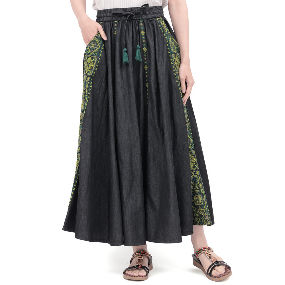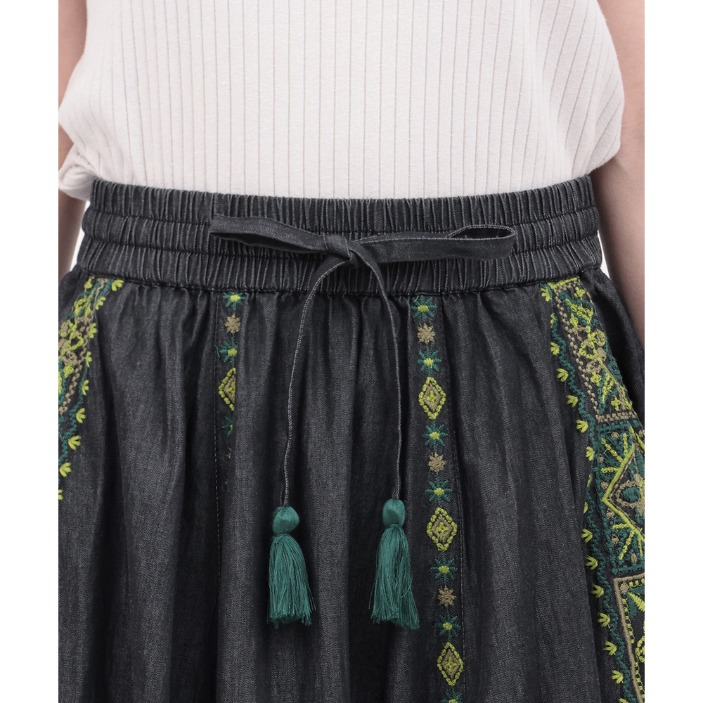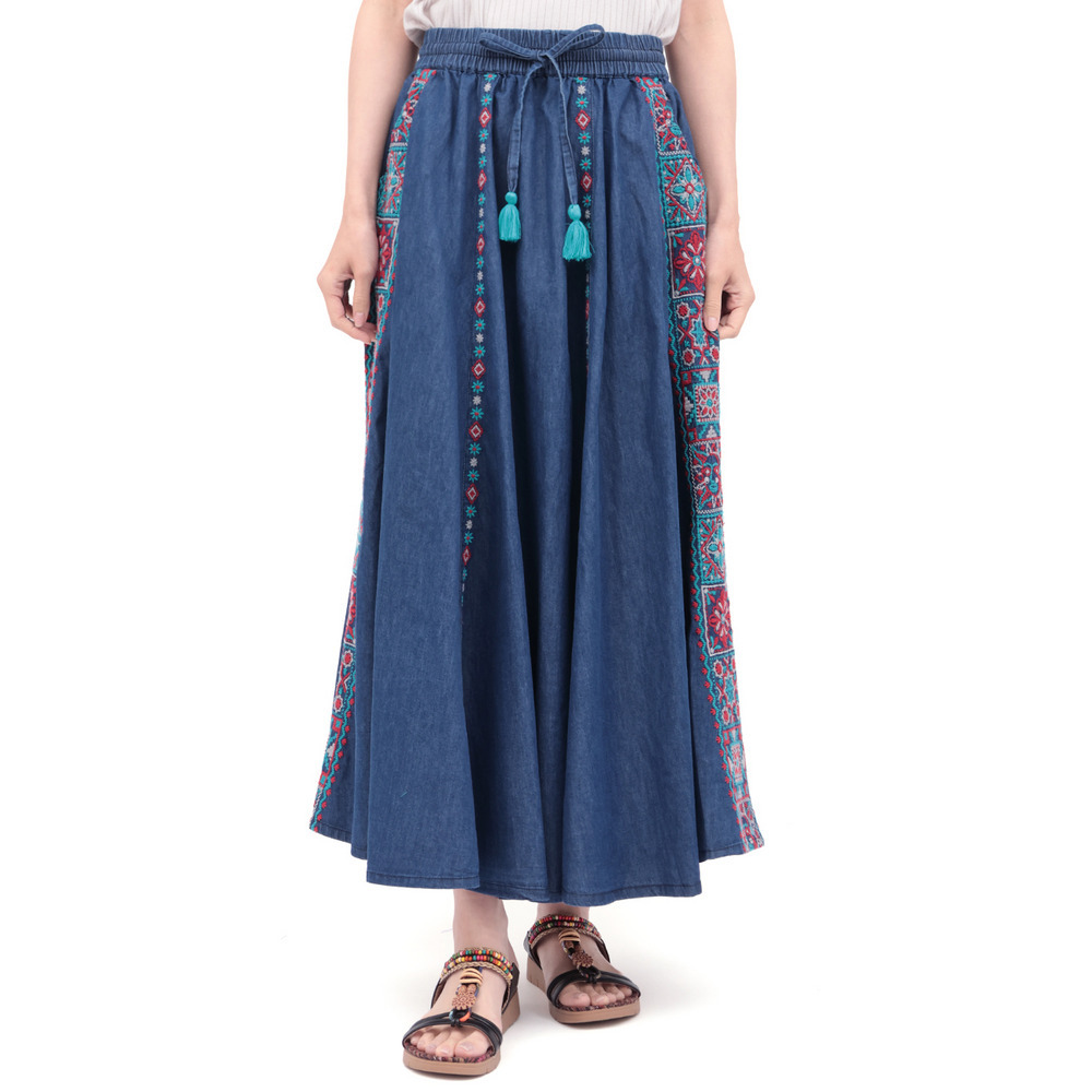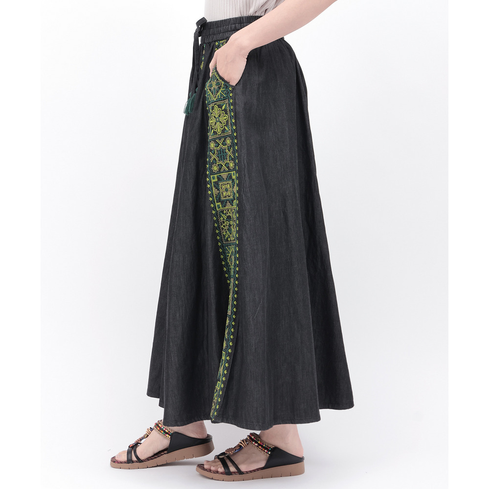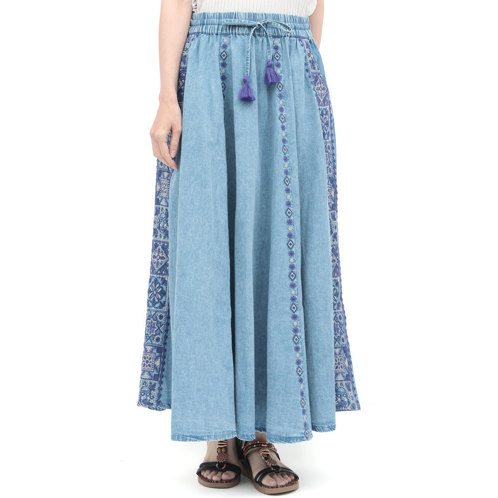 贅沢に刺繍をあしらった大人なデニムフレアスカート