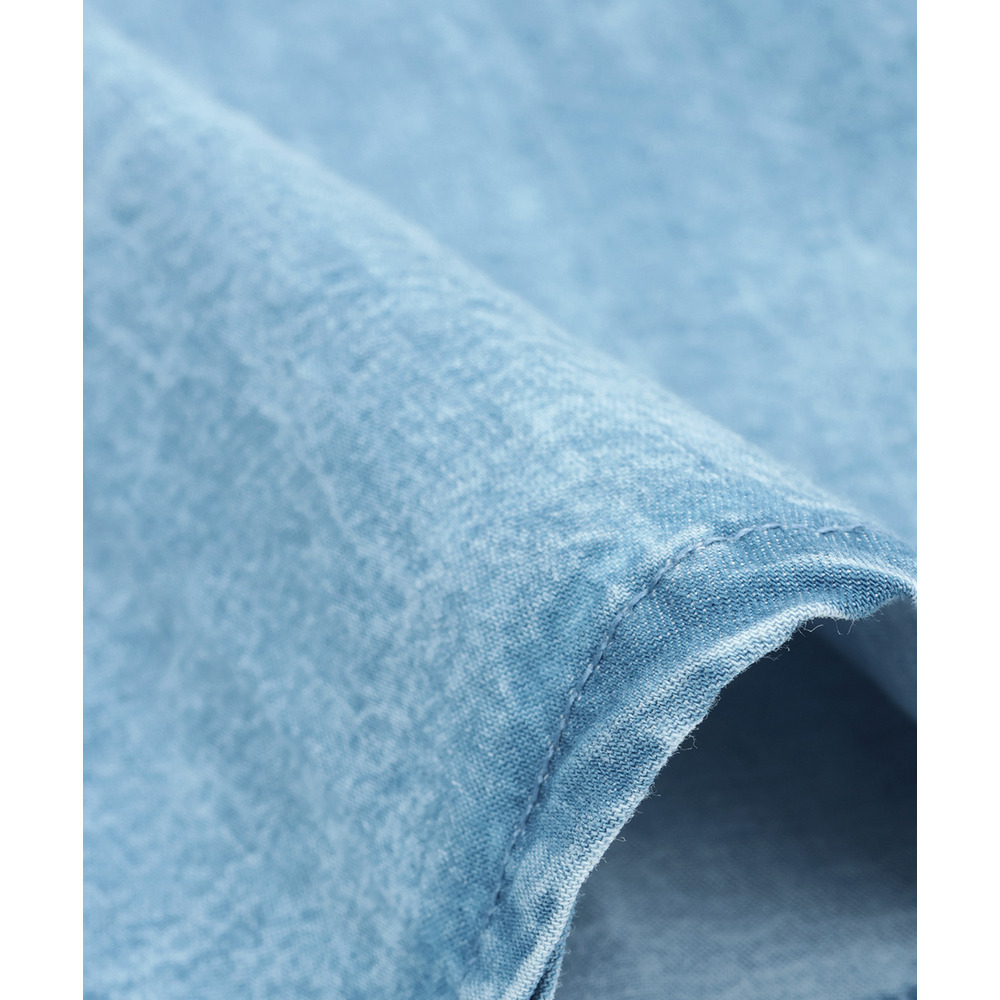 風合いの良いライトオンスデニムを使用し、ウエストゴムのロングフレアスカートに仕上げることで、リラックス感のある大人の抜け感を演出。