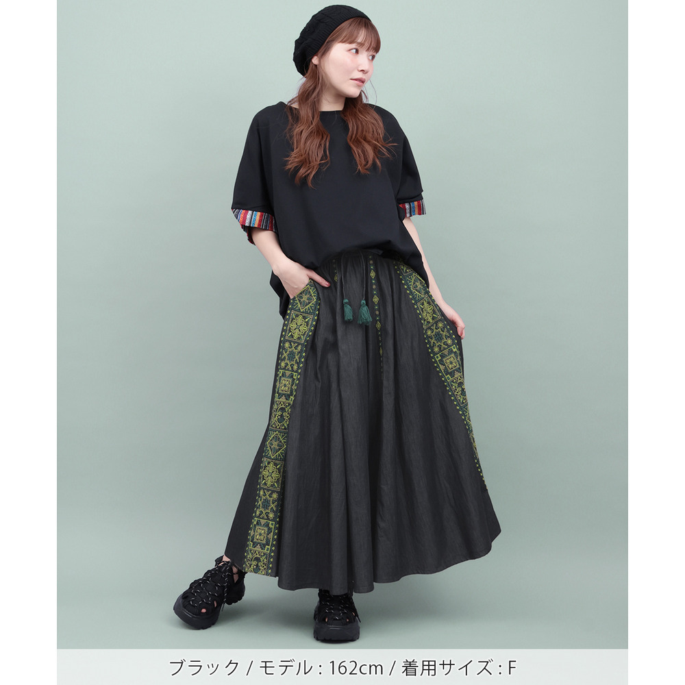 • Rico ライトデニムメヒコタイル刺繍フレアスカート2