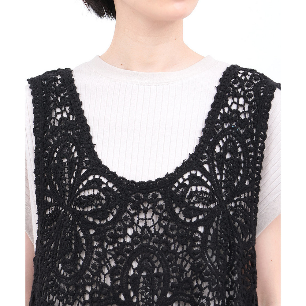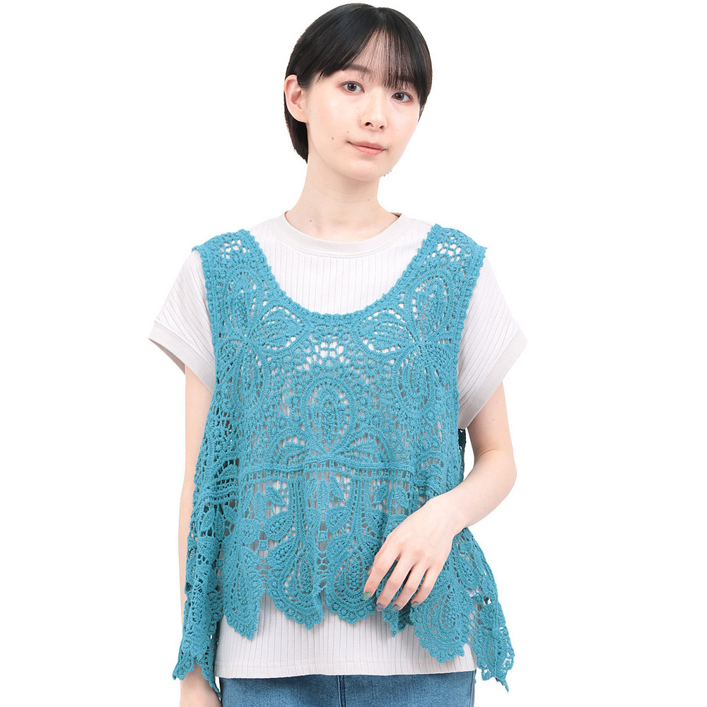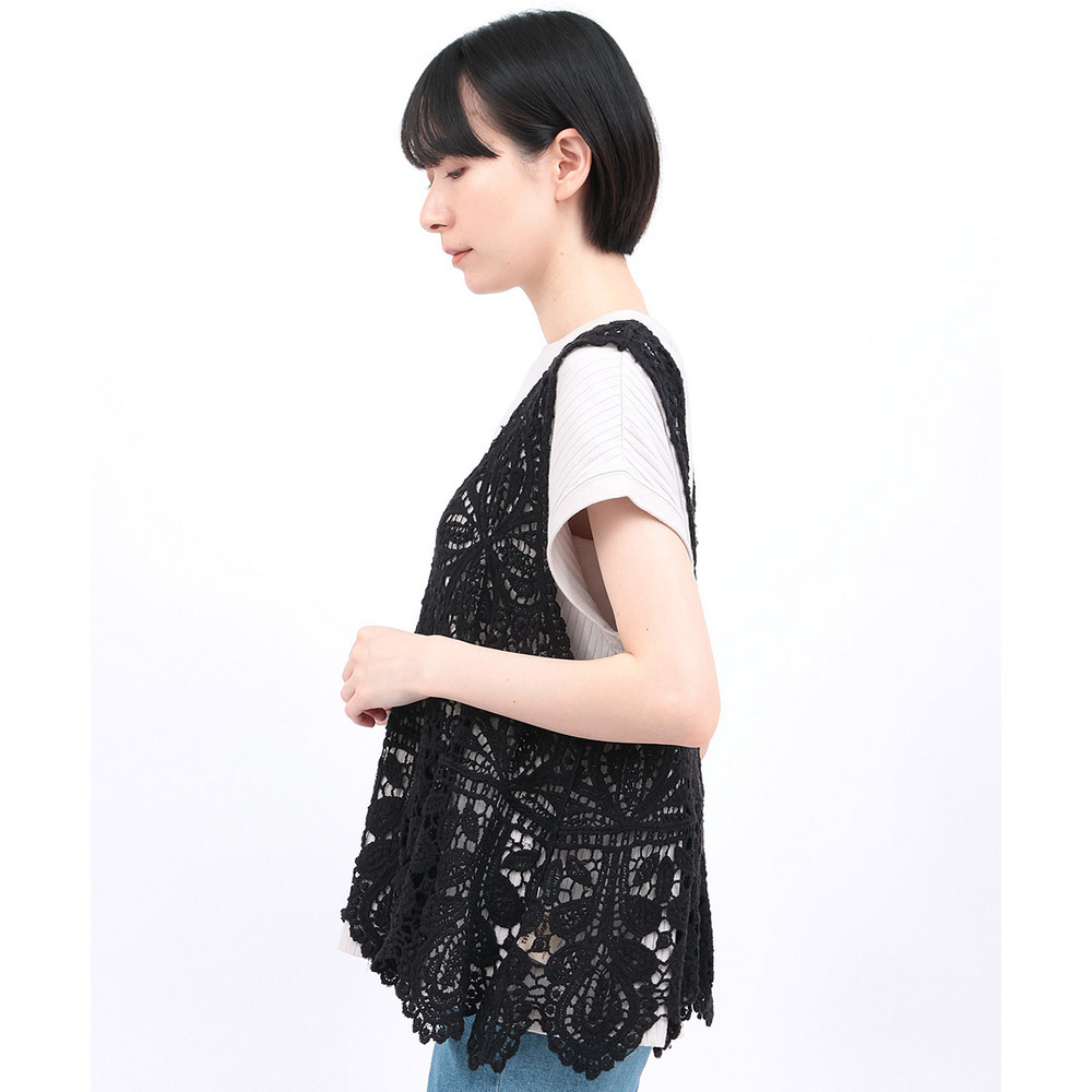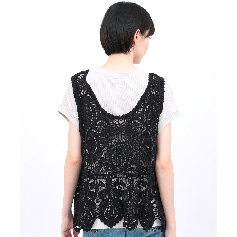 ナチュラルな風合いのコットン糸のかぎ針編み風のベスト。