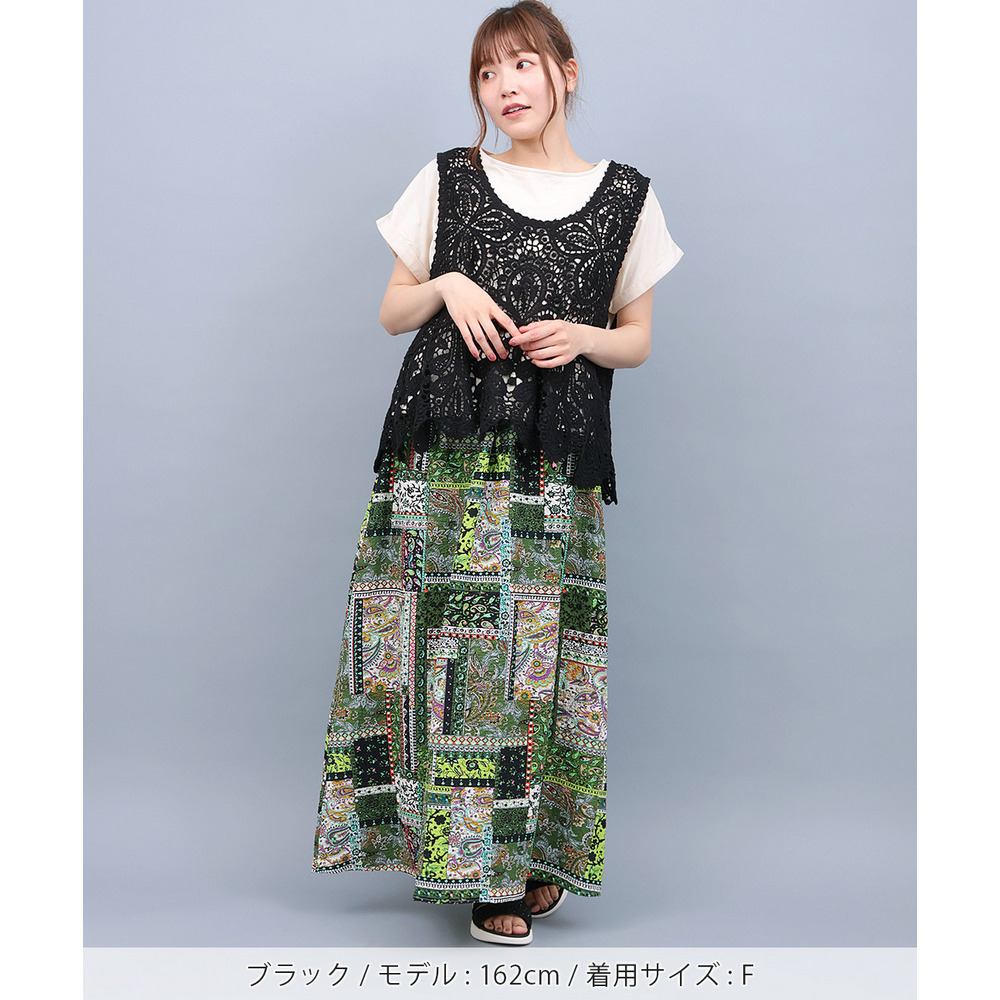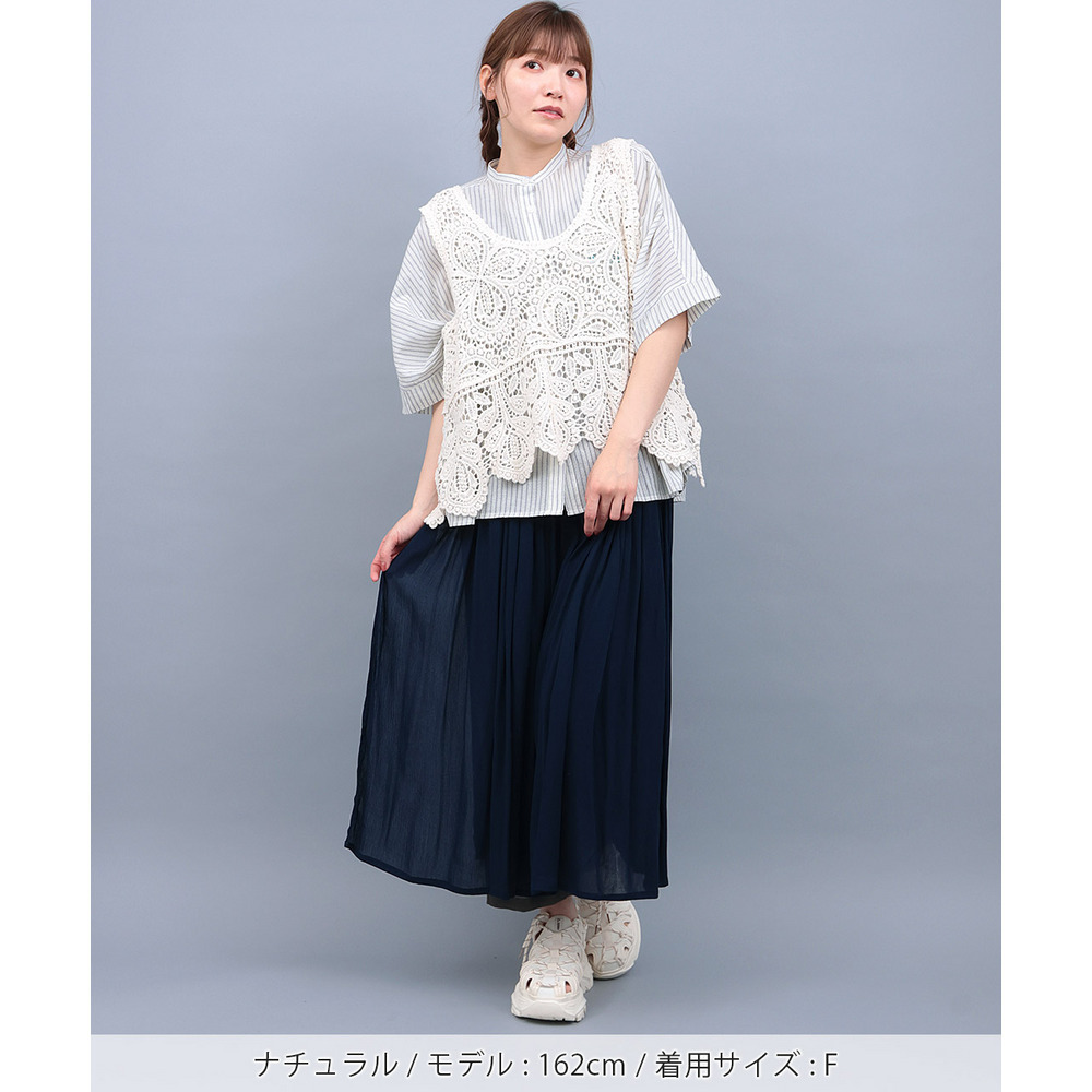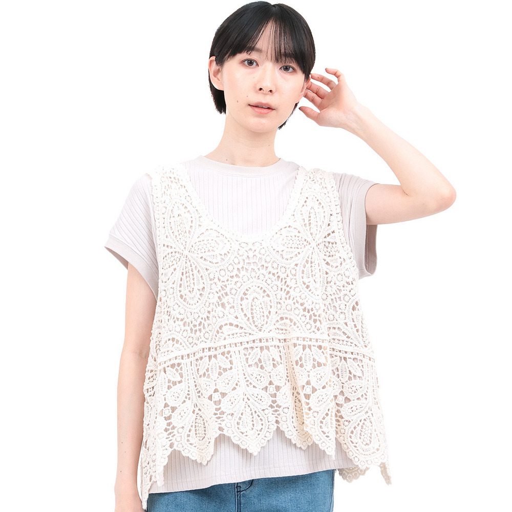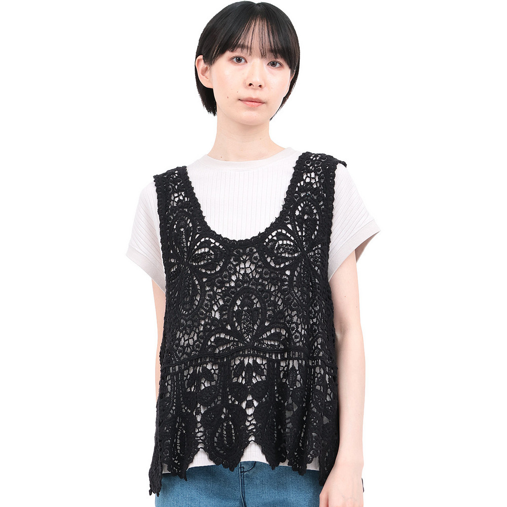 ナチュラルな風合いのコットン糸のかぎ針編み風のベスト。