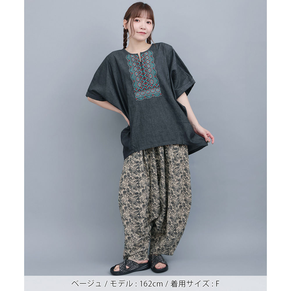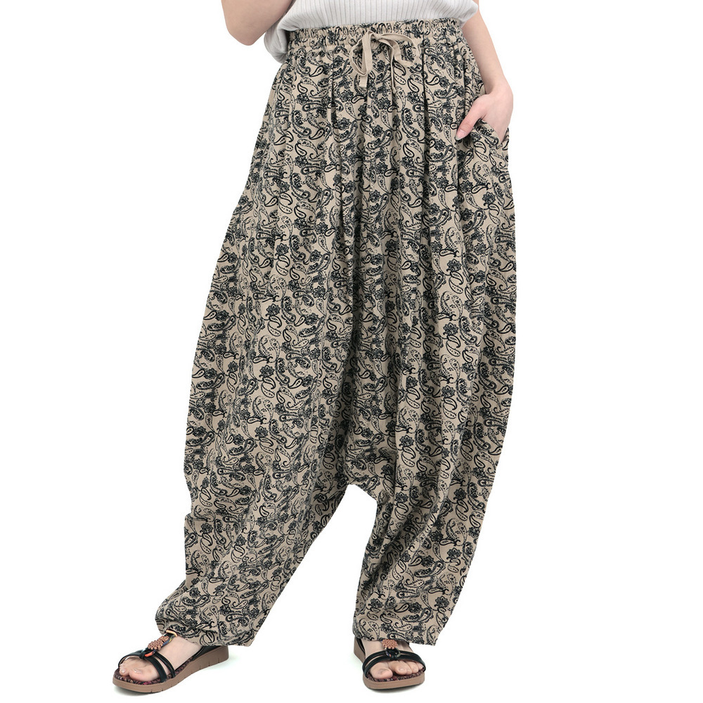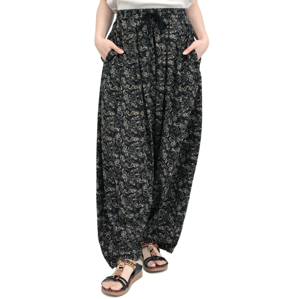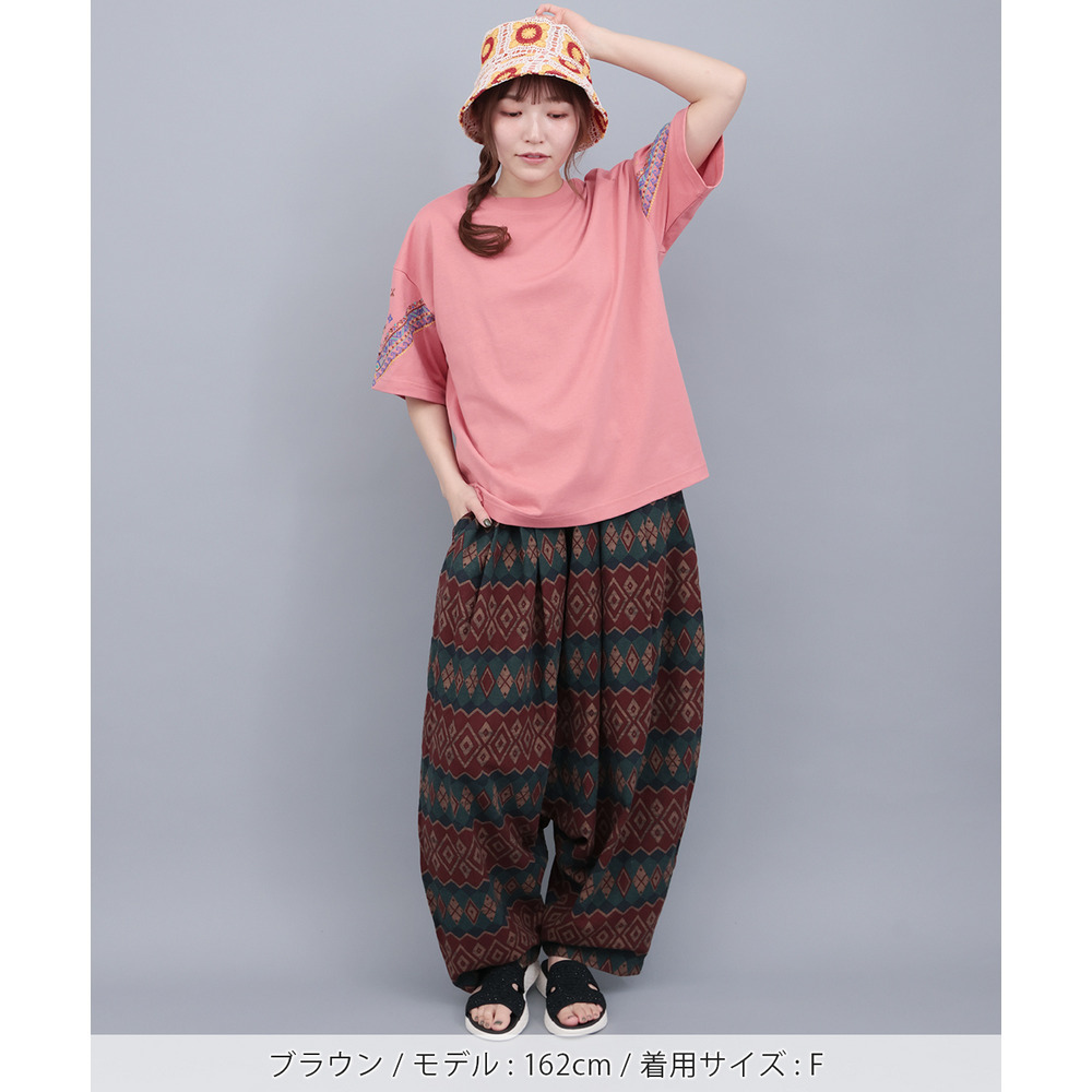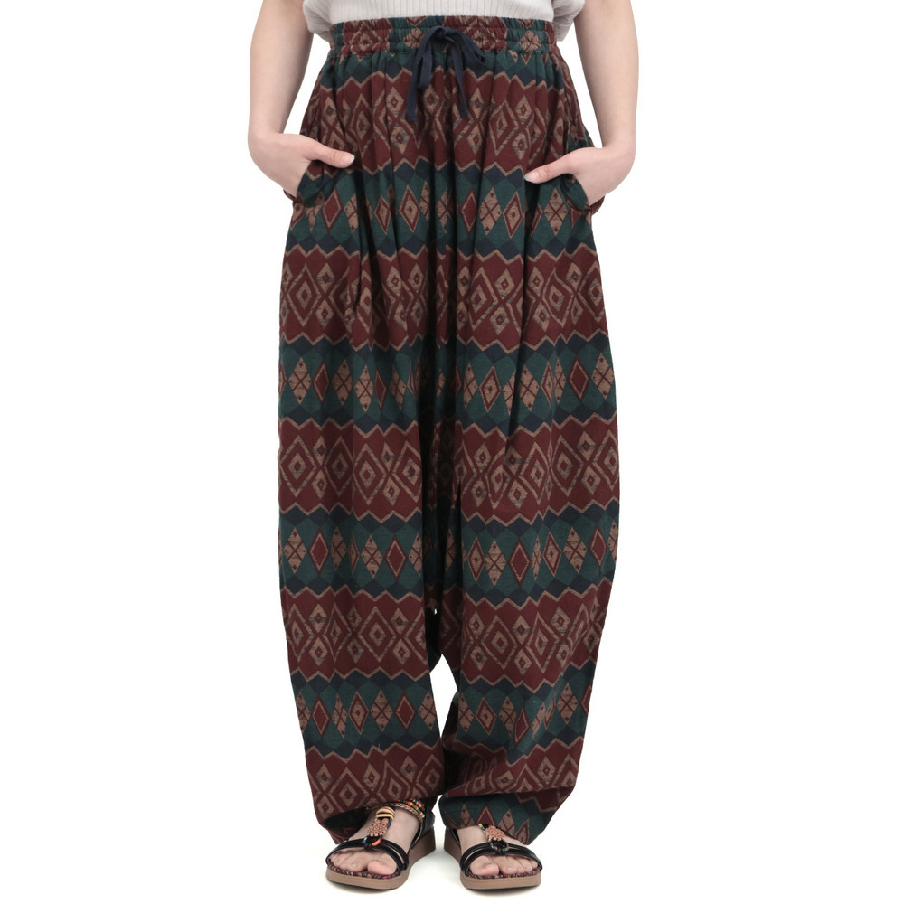 エスニックスタイルの定番、カジュアルにも取り入れやすいサルエルパンツ。