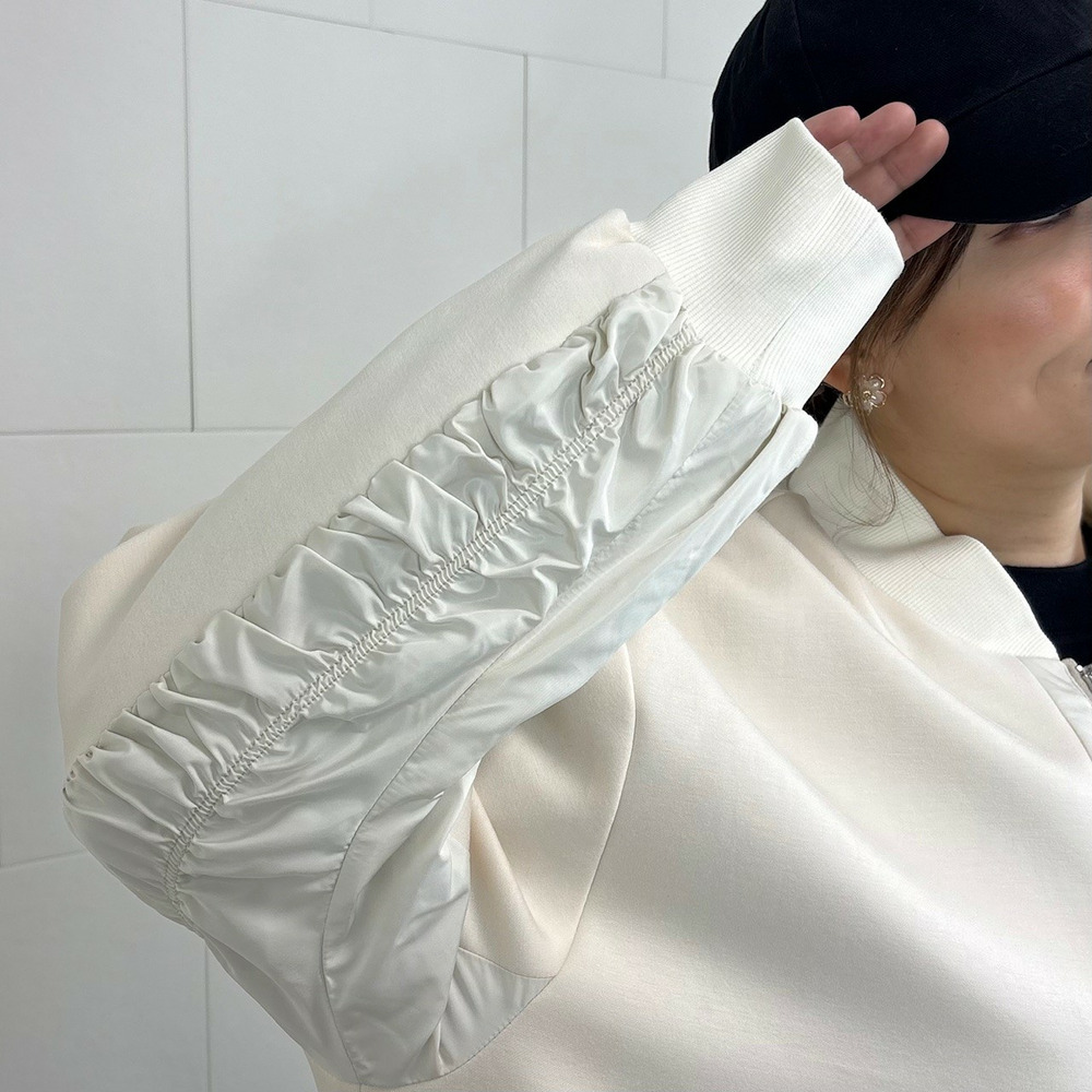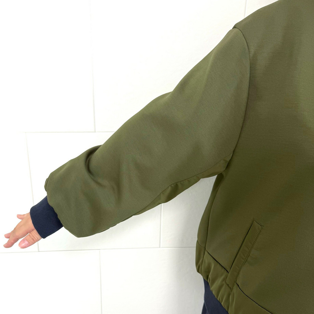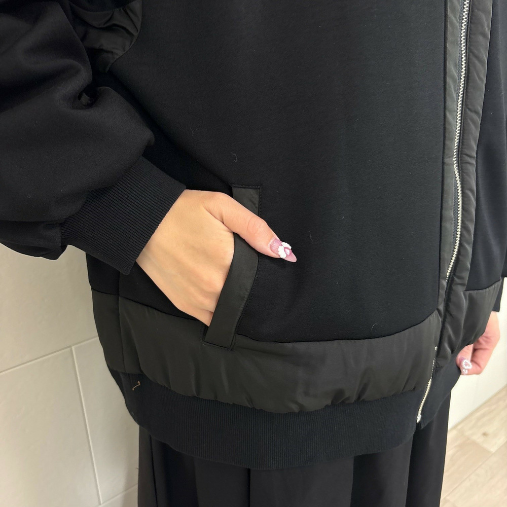 ダンボール素材に中綿タフタをドッキングしたジャケットです。前ファスナー。