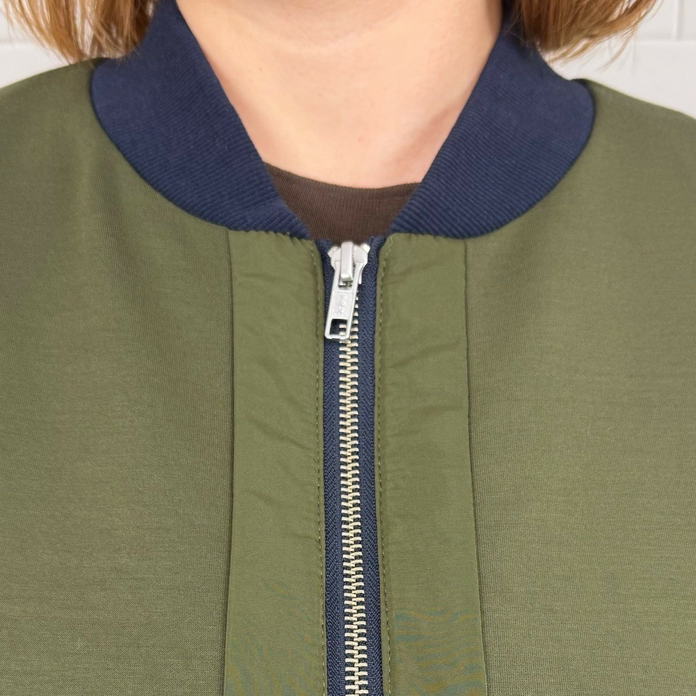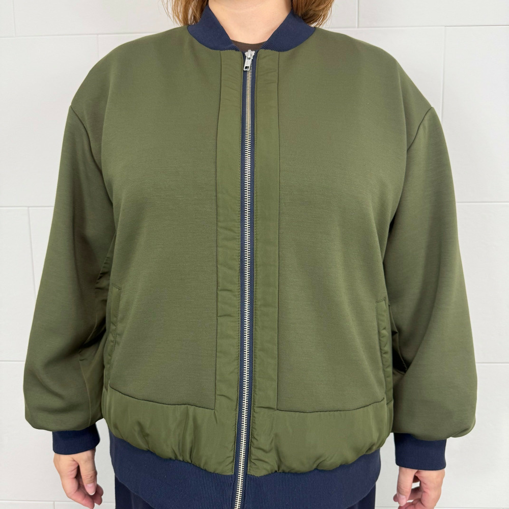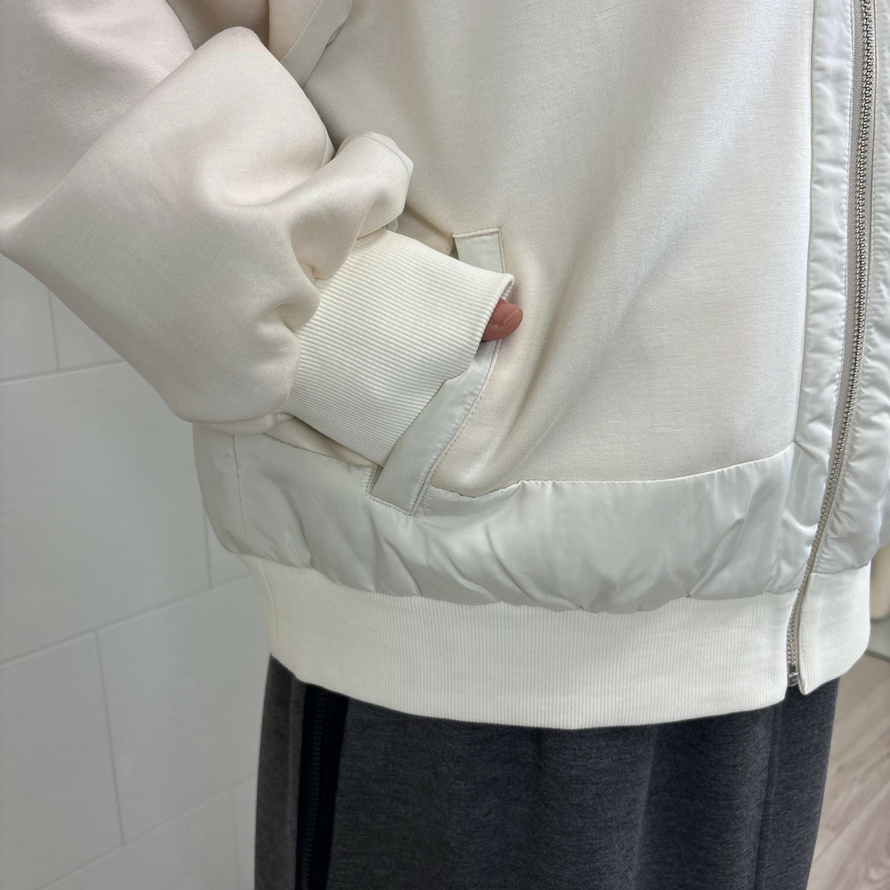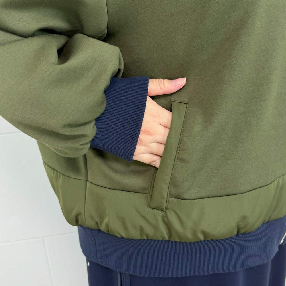 ダンボール素材に中綿タフタをドッキングしたジャケットです。前ファスナー。