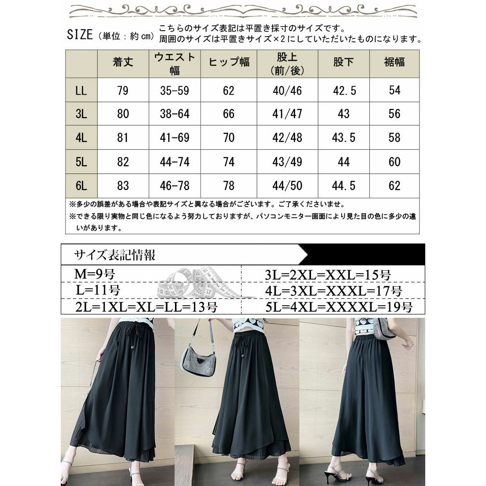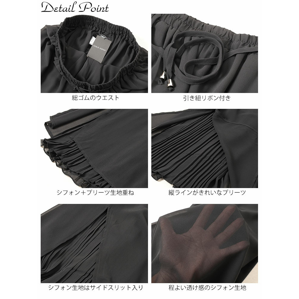 • 大きいサイズ レディース シフォン重ねプリーツガウチョパンツ11
