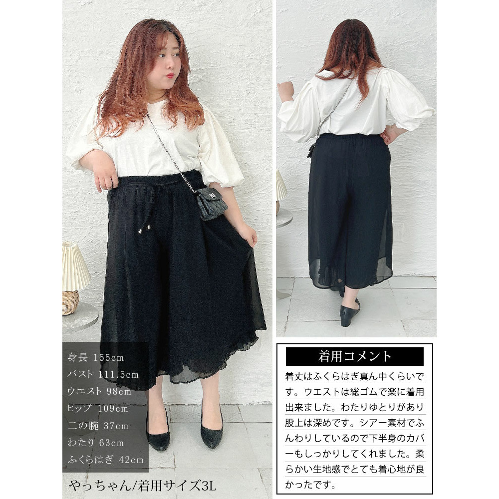 • 大きいサイズ レディース シフォン重ねプリーツガウチョパンツ3