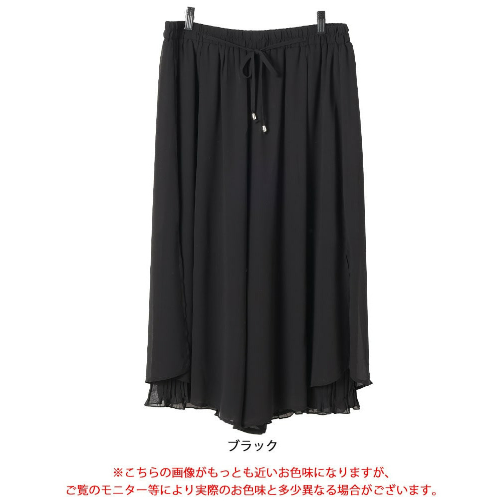 • 大きいサイズ レディース シフォン重ねプリーツガウチョパンツ1