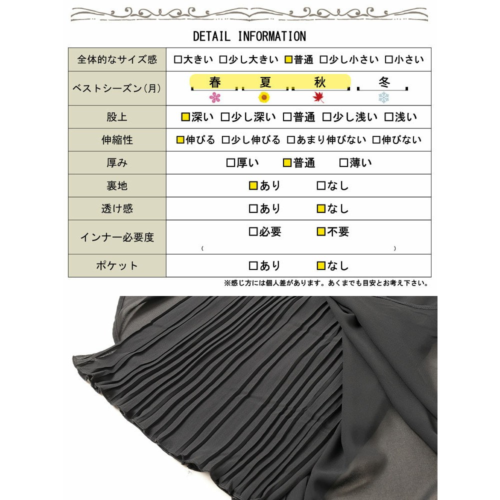 透け感のあるシフォンの下はプリーツになったお洒落デザイン。