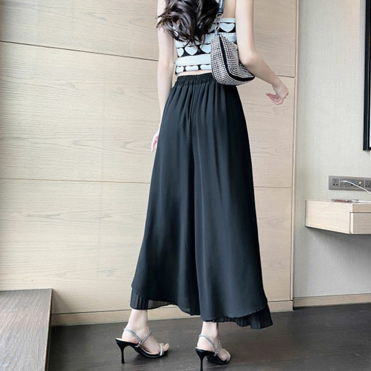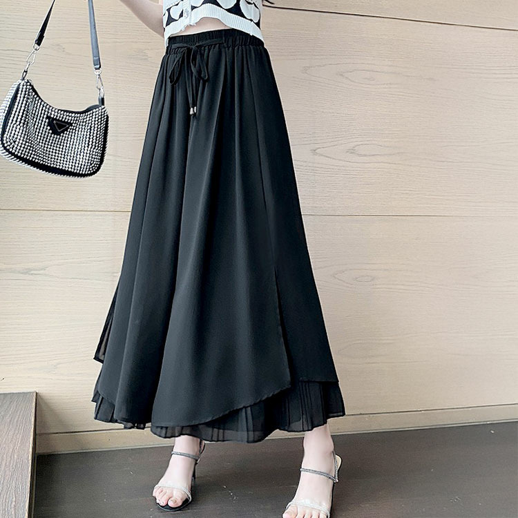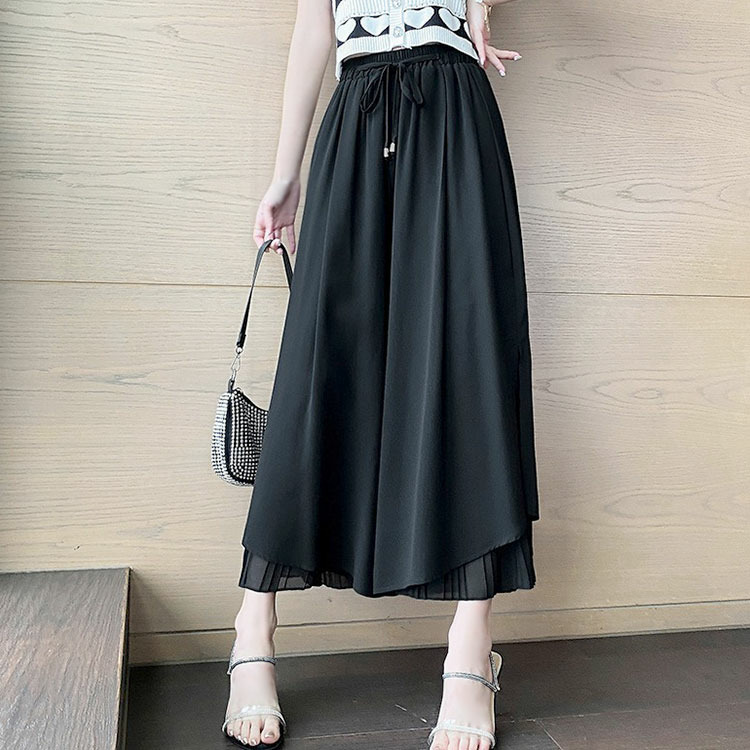 大きいサイズ レディース シフォン重ねプリーツガウチョパンツ