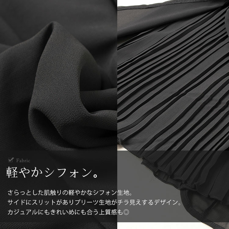 シフォンはスリット入りで、プリーツラインがちらっと見えるのがポイント。