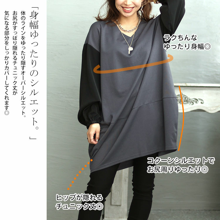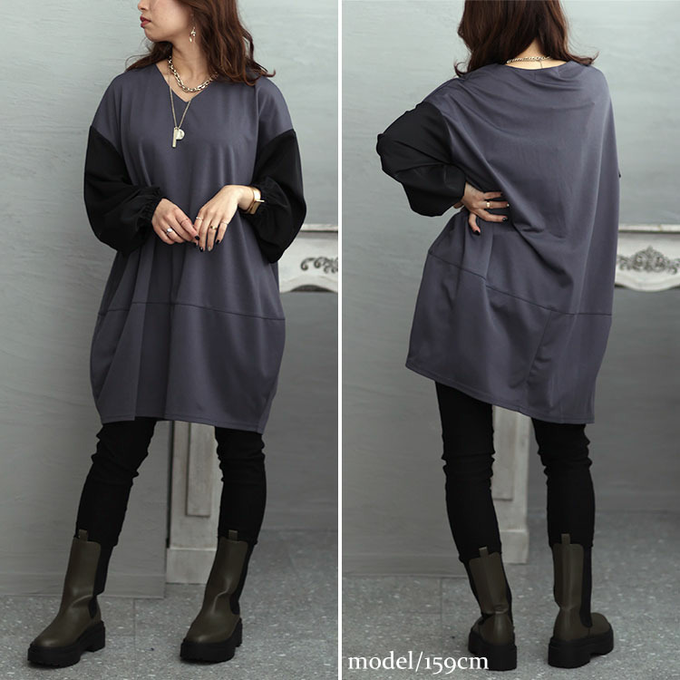 すっぽりとヒップが隠れる丈なのでスキニーパンツとコーデするのがおすすめです。