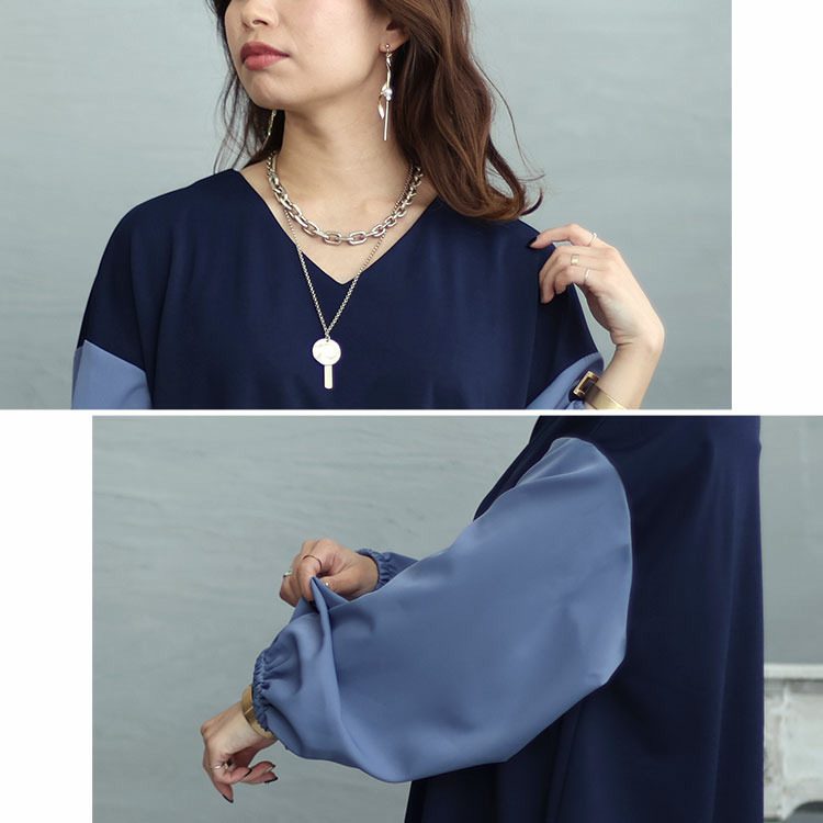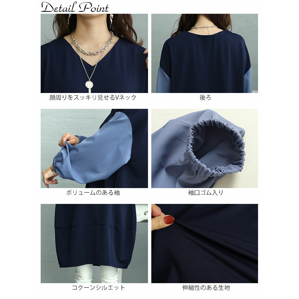 首元はVネックですっきりとした印象に☆