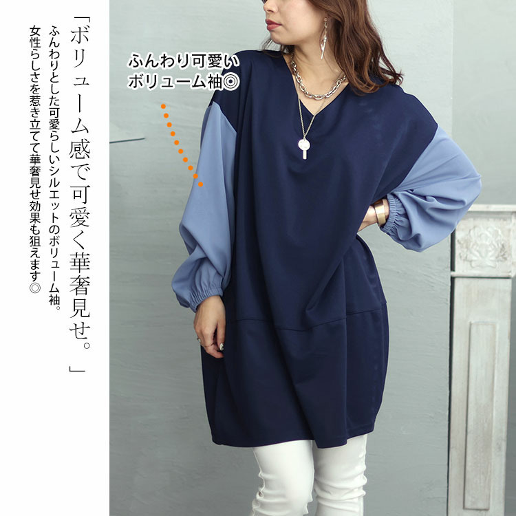 袖はとろみ感のあるブラウス生地でボリューム袖なので二の腕も気にならず、スッキリ見えるシルエットです。