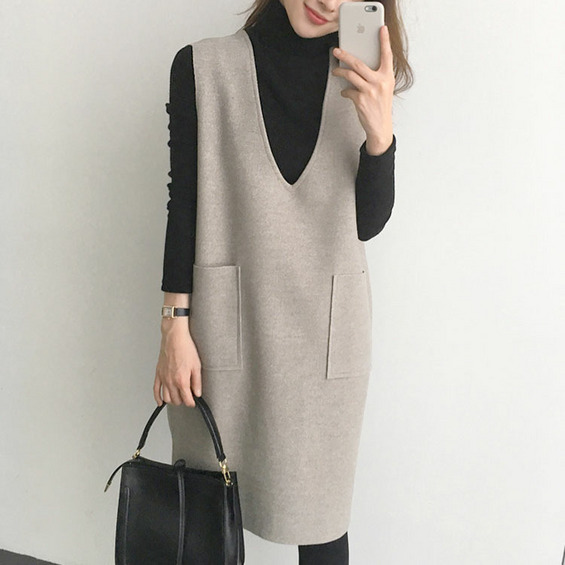 ジャンパースカートはIラインシルエットで体型を拾わす華奢見せ効果◎