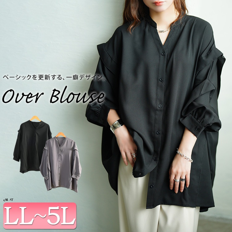 • 大きいサイズ レディース タックショルダースキッパーシャツ1