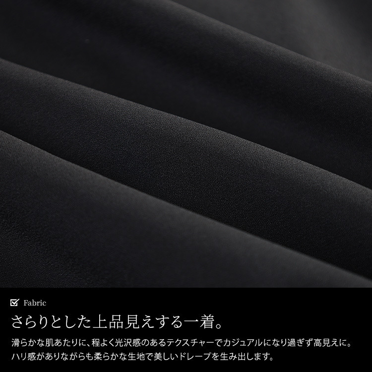 ゆったりとしたオーバーサイズシルエットは、体型を拾わずリラックスした着心地。ドレープ感のある生地が、着用時に美しい流れるようなシルエットを作り出します。顔周りをすっきりと見せるキーネックは、上品な抜け感を演出し、大人見えに。