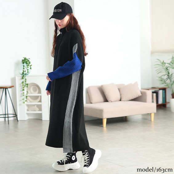 大きいサイズ レディース ハーフZIP配色切り替えニットワンピース