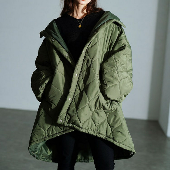立ち上がりフードやボリューム袖など細部にまでこだわったディティールです。ひょうたん型キルティングを施したあったか三層構造で着膨れせずに着用いただけます。