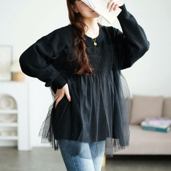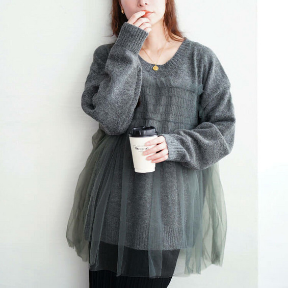 チュール部分は透け感のある質感で長め着丈でも軽やかな雰囲気を演出します♪