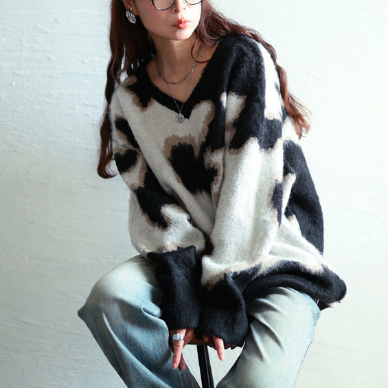 一見派手な印象ですが色味はモノトーンで落ち着いているので大人カジュアルにぴったりの一着◎