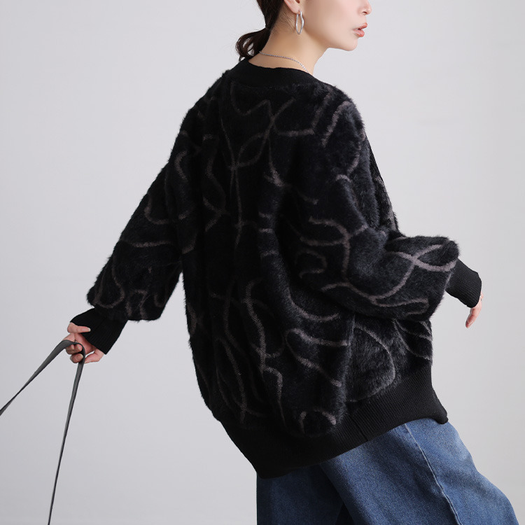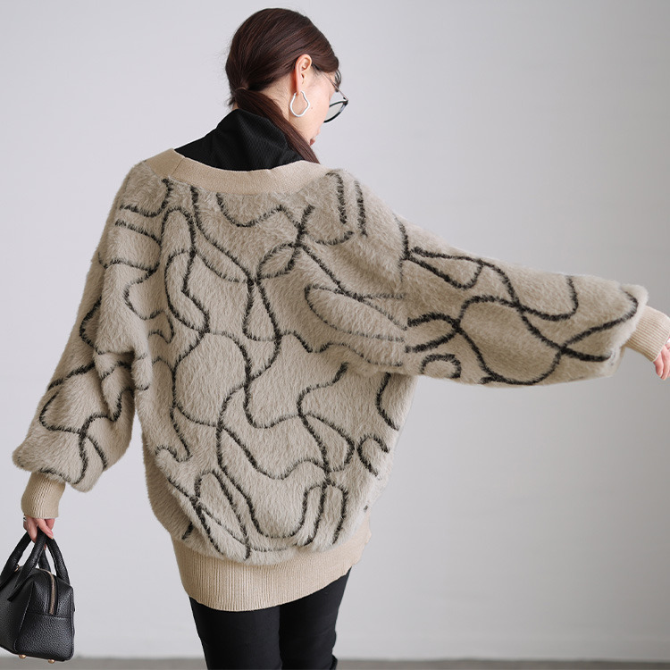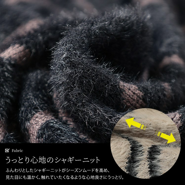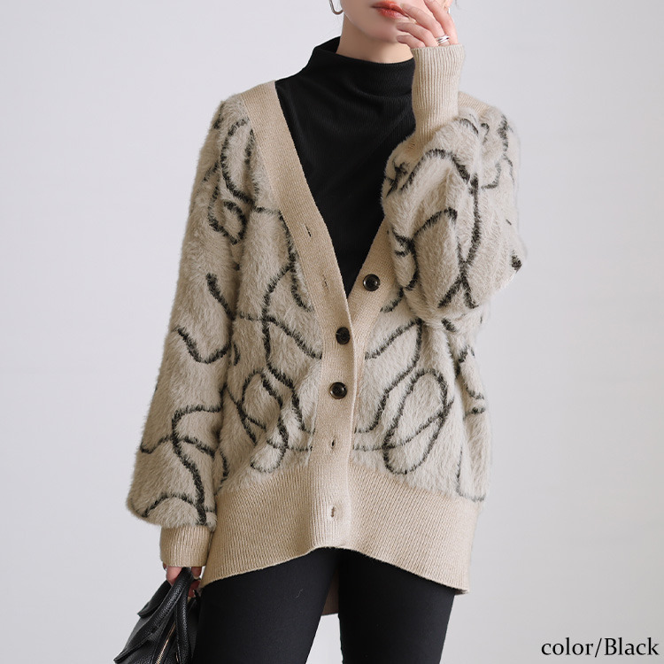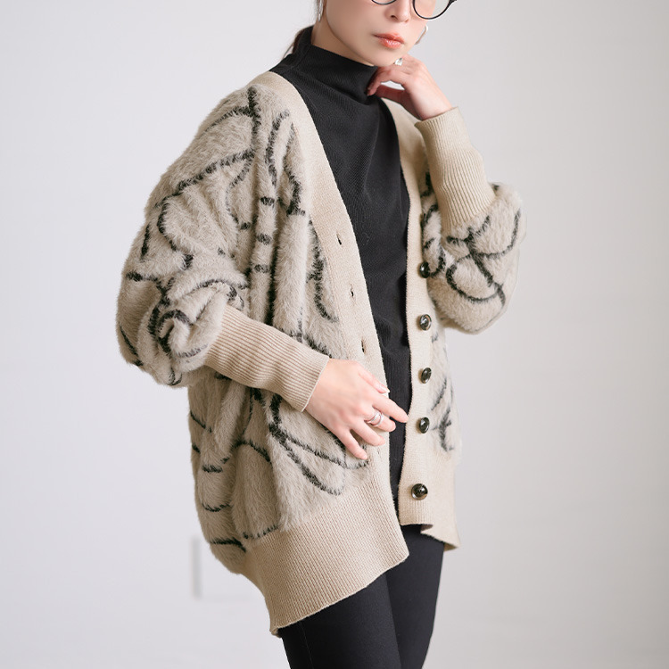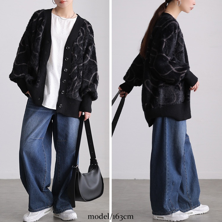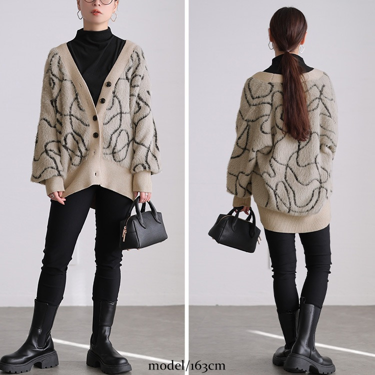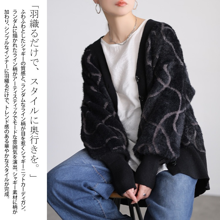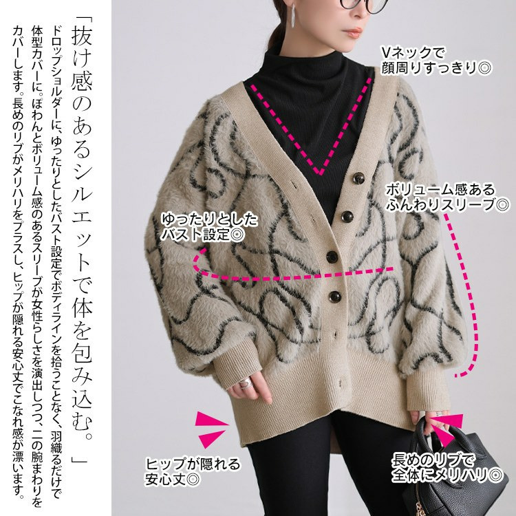 ドロップショルダーに、ゆったりとしたバスト設定でボディラインを拾うことなく、羽織るだけで体型カバーに。ぽわんとボリューム感のあるスリーブが女性らしさを演出しつつ、二の腕まわりをカバーします。長めのリブがメリハリをプラスし、ヒップが隠れる安心丈でこなれ感が漂います。