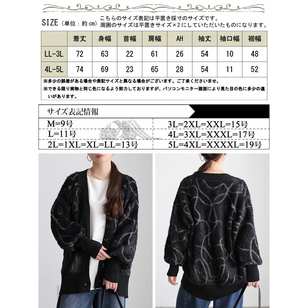 サイズ表記 LL-3L 4L-5L 着丈72cm 身幅 63cm 69cm 首幅 22cm 23cm 肩幅 61cm 65cm AH 26cm 28cm 袖丈 54cm 54cm 袖口幅 10cm 11cm 裾幅 48cm 52cm