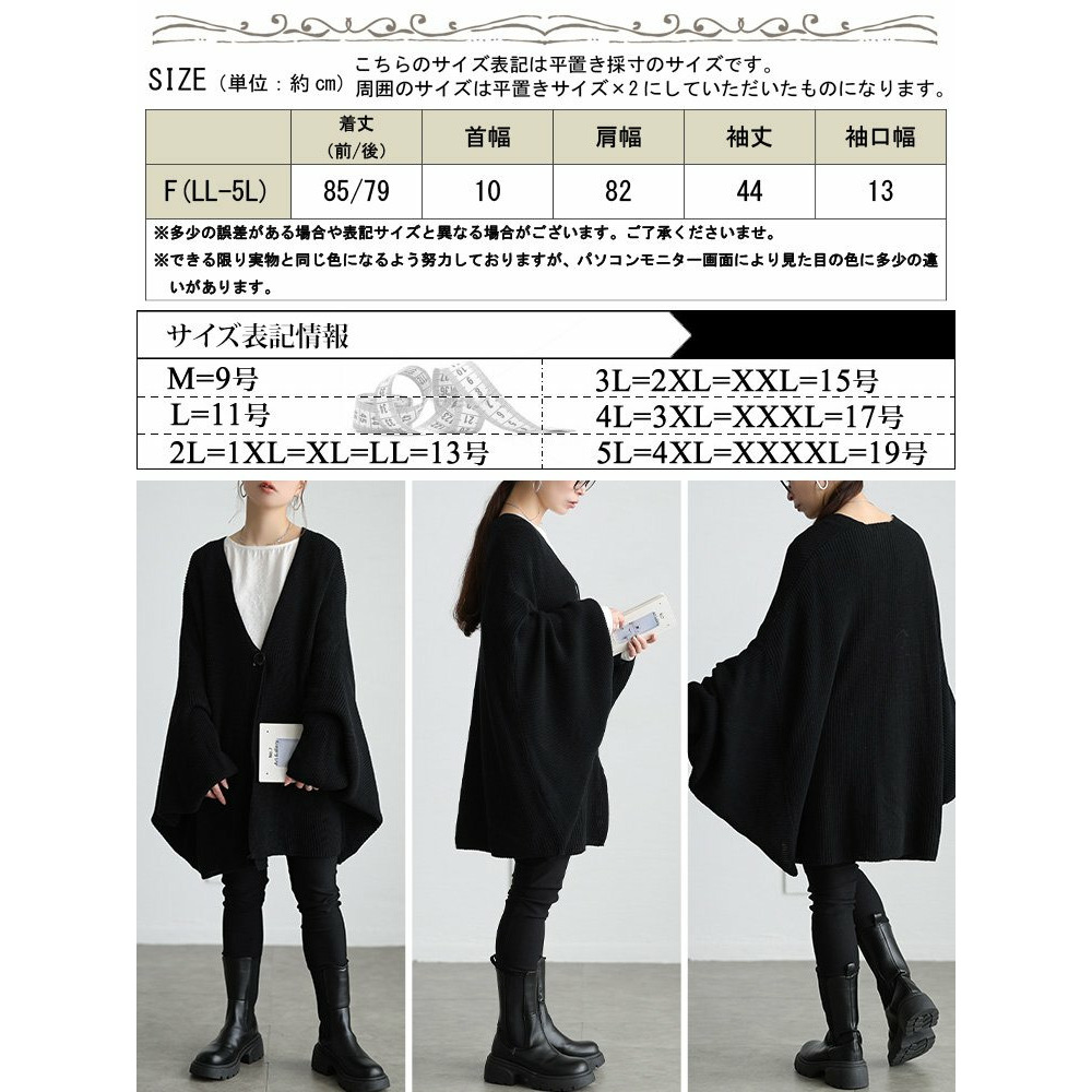 サイズ表記 F(LL-5L) 着丈(前/後) 85/79cm 首幅 10cm 肩幅 82cm 袖丈 44cm 袖口幅 13cm