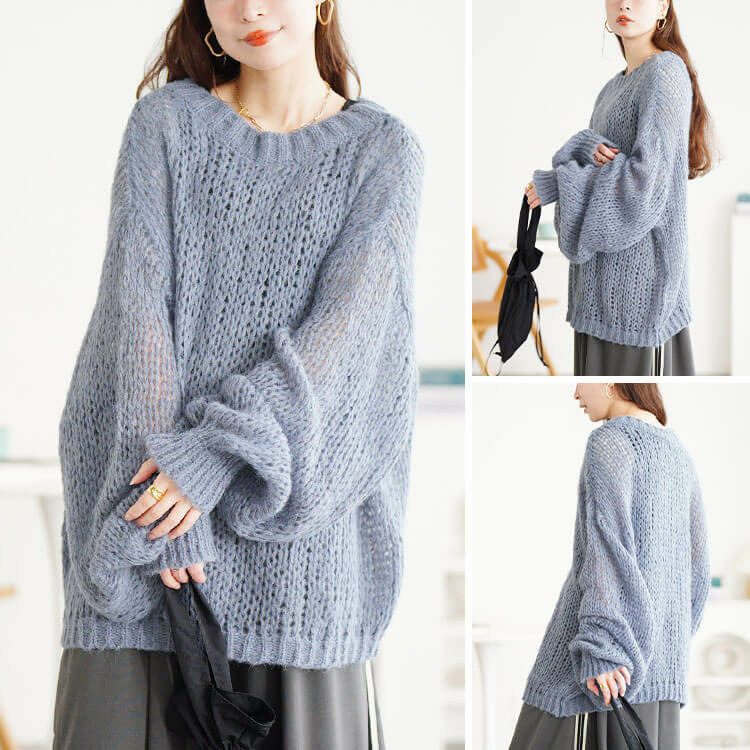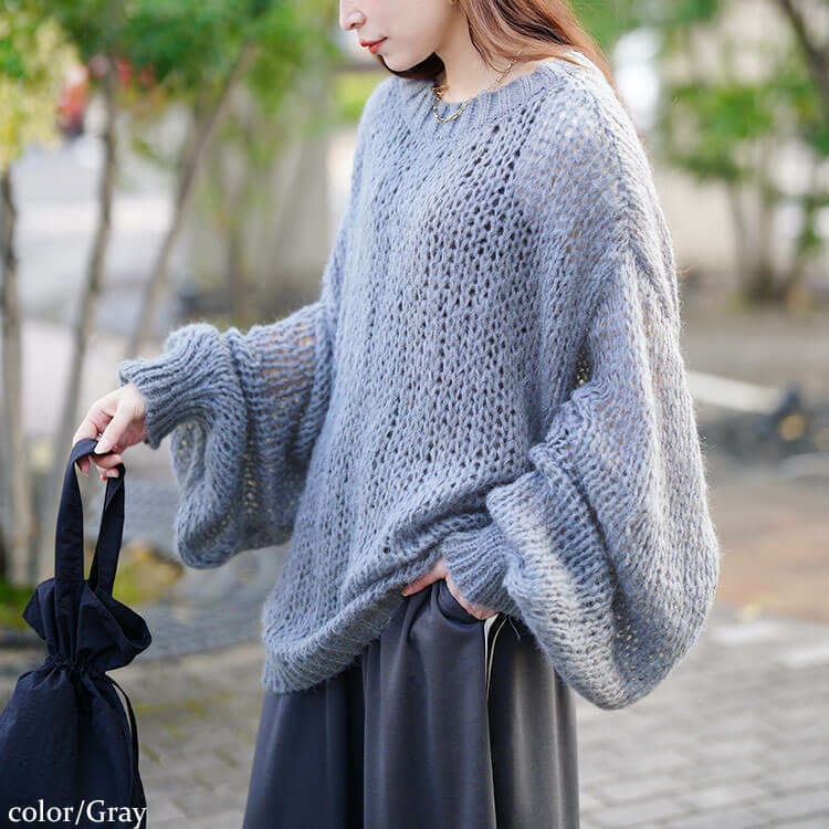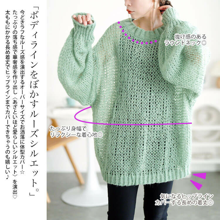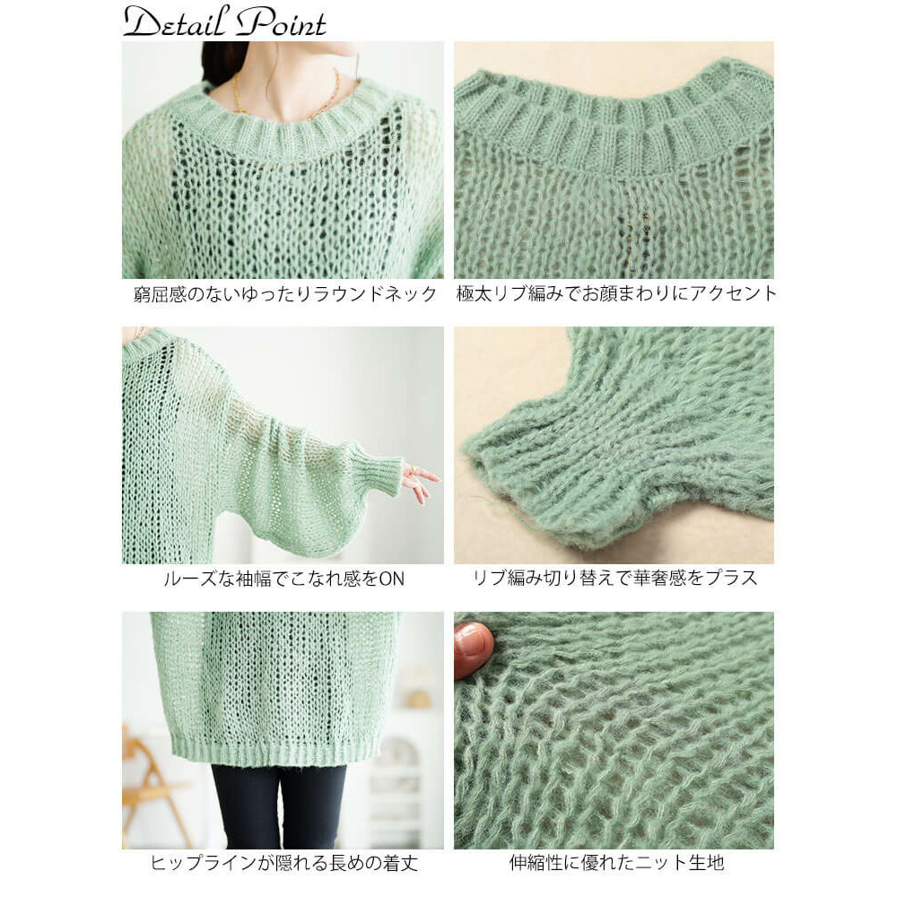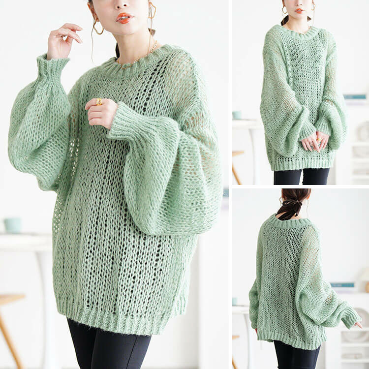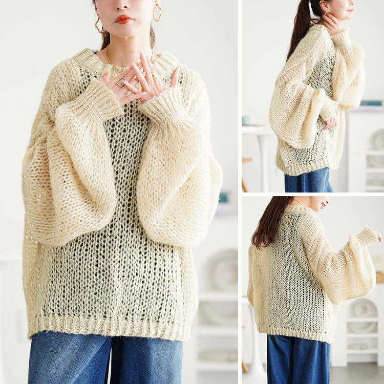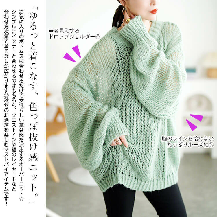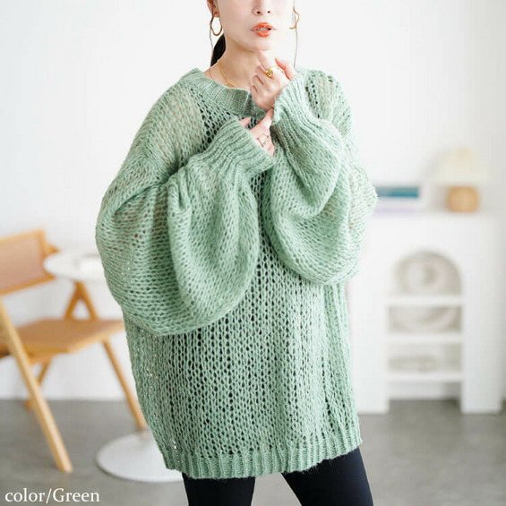 • 大きいサイズ レディース ボリューム袖オーバーサイズローゲージニット11