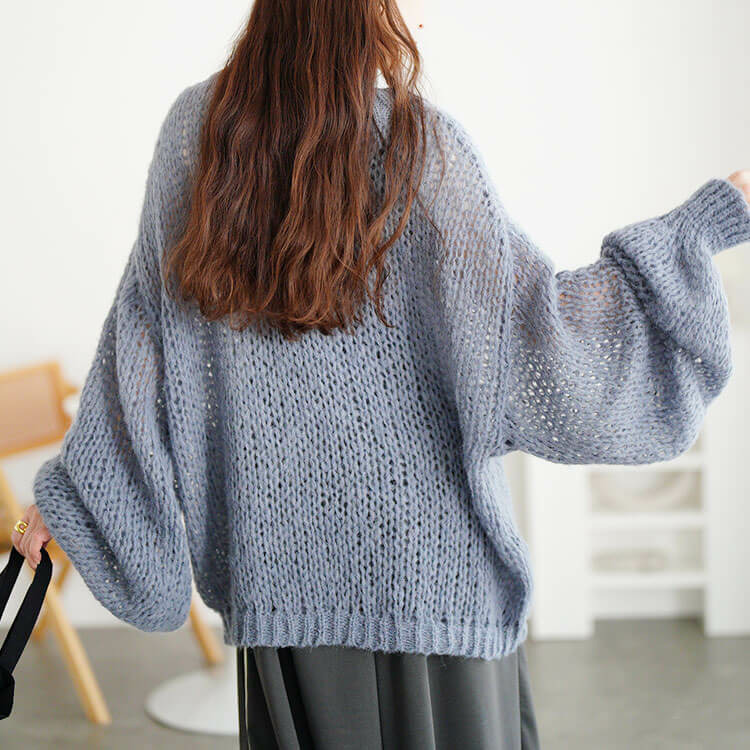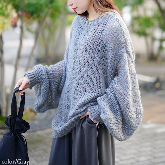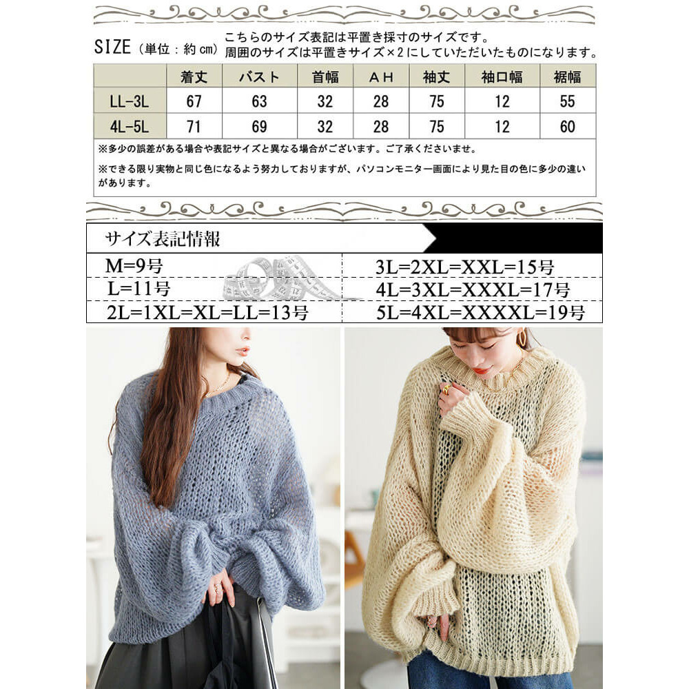 • 大きいサイズ レディース ボリューム袖オーバーサイズローゲージニット10