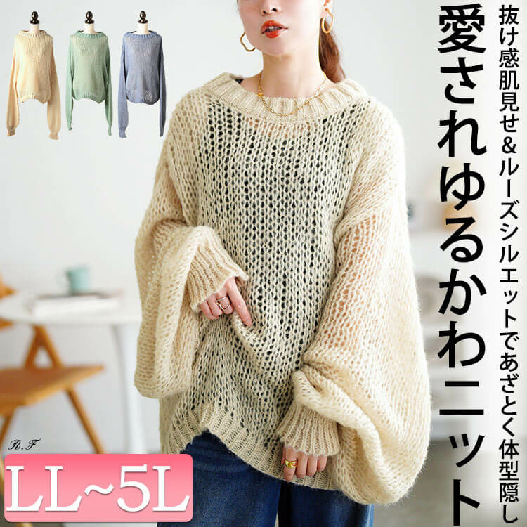 • 大きいサイズ レディース ボリューム袖オーバーサイズローゲージニット12
