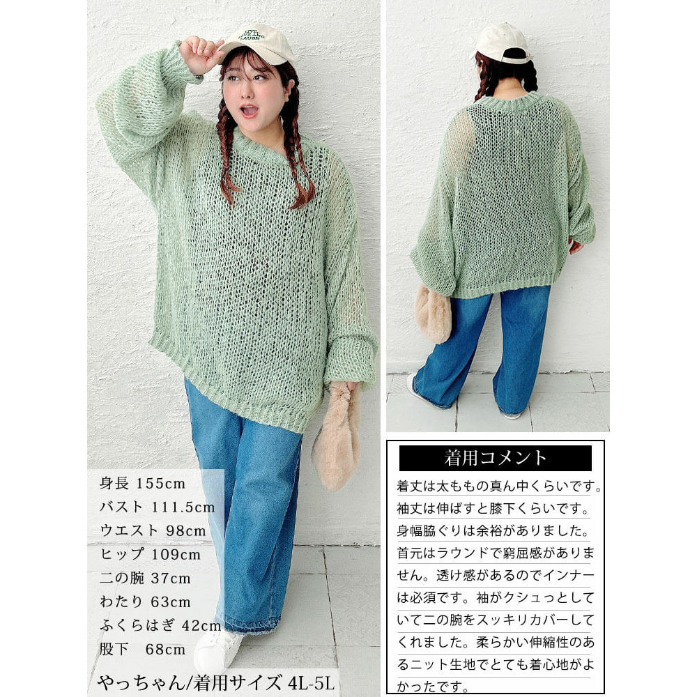 • 大きいサイズ レディース ボリューム袖オーバーサイズローゲージニット6