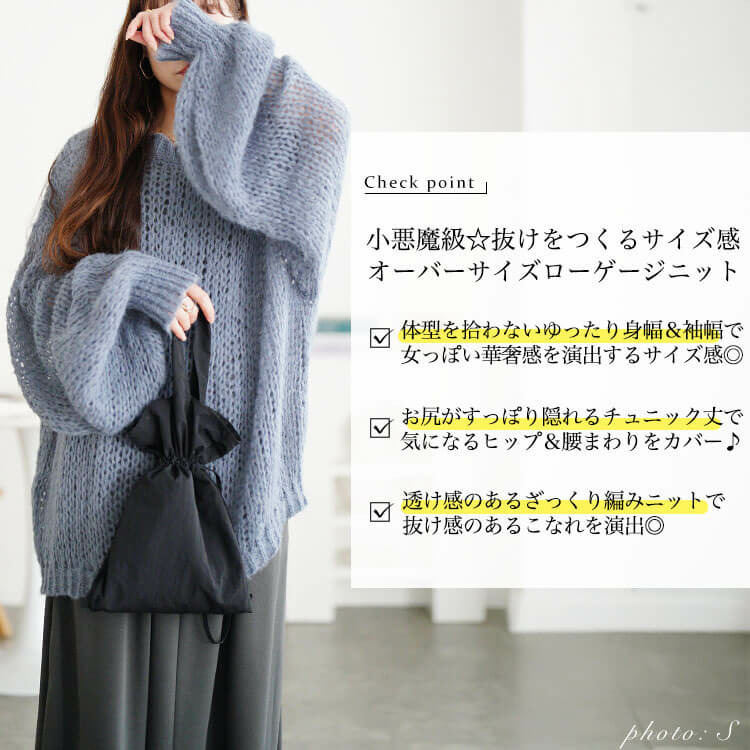 ざっくり感がこなれ見えする、ボリューム袖オーバーサイズローゲージニットの登場です☆