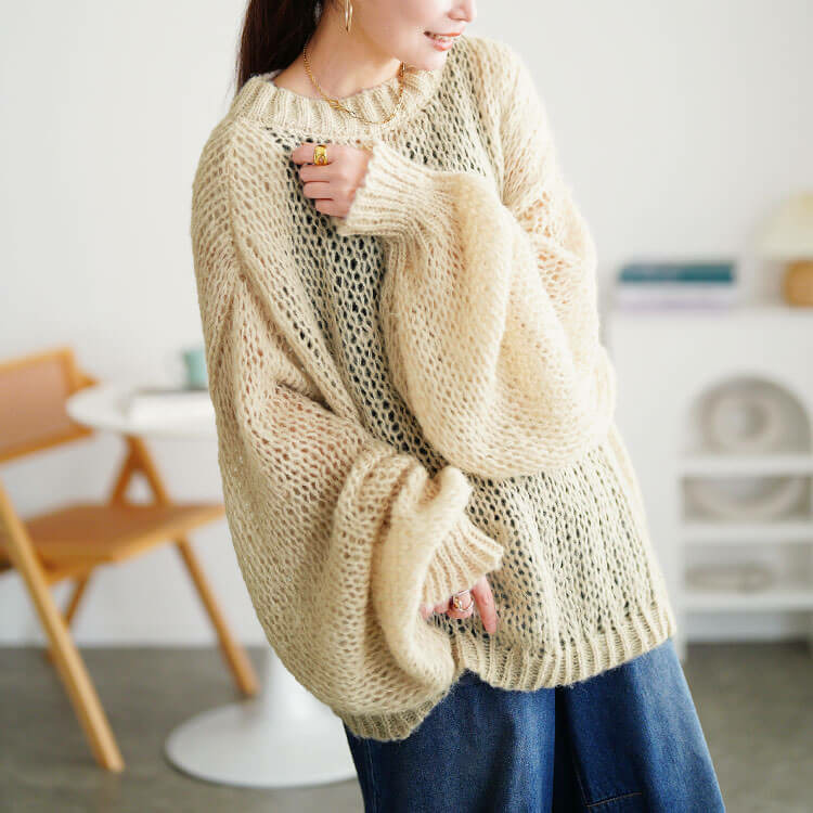 透け感のあるざっくり編みニットで抜け感のあるこなれを演出☆