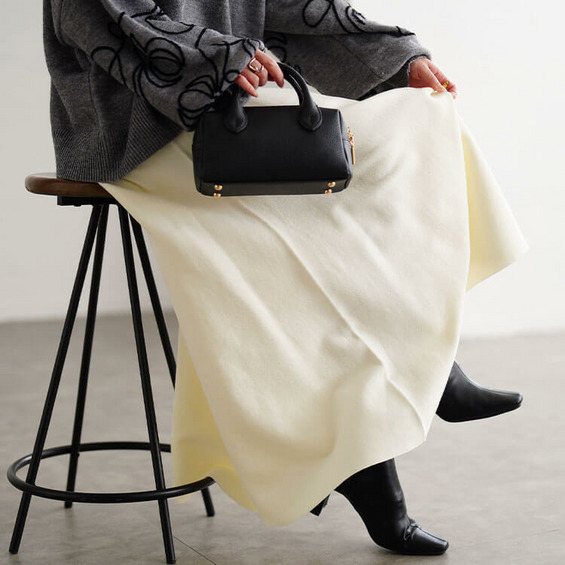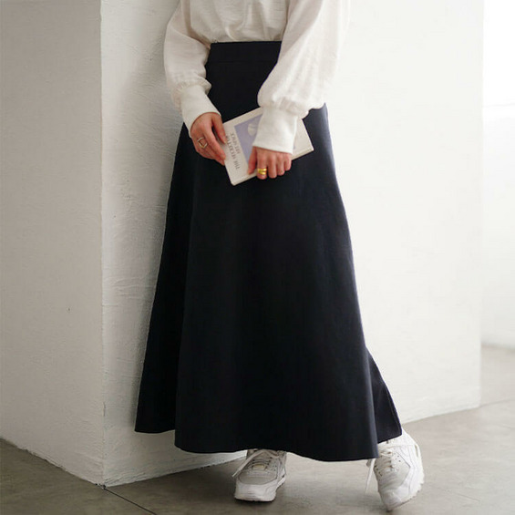 女性らしさ惹き立つ、ハイゲージニットフレアスカート。