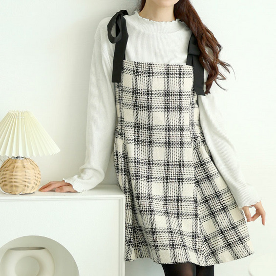 • 大きいサイズ レディース 肩リボンツイードミニフレアワンピース13