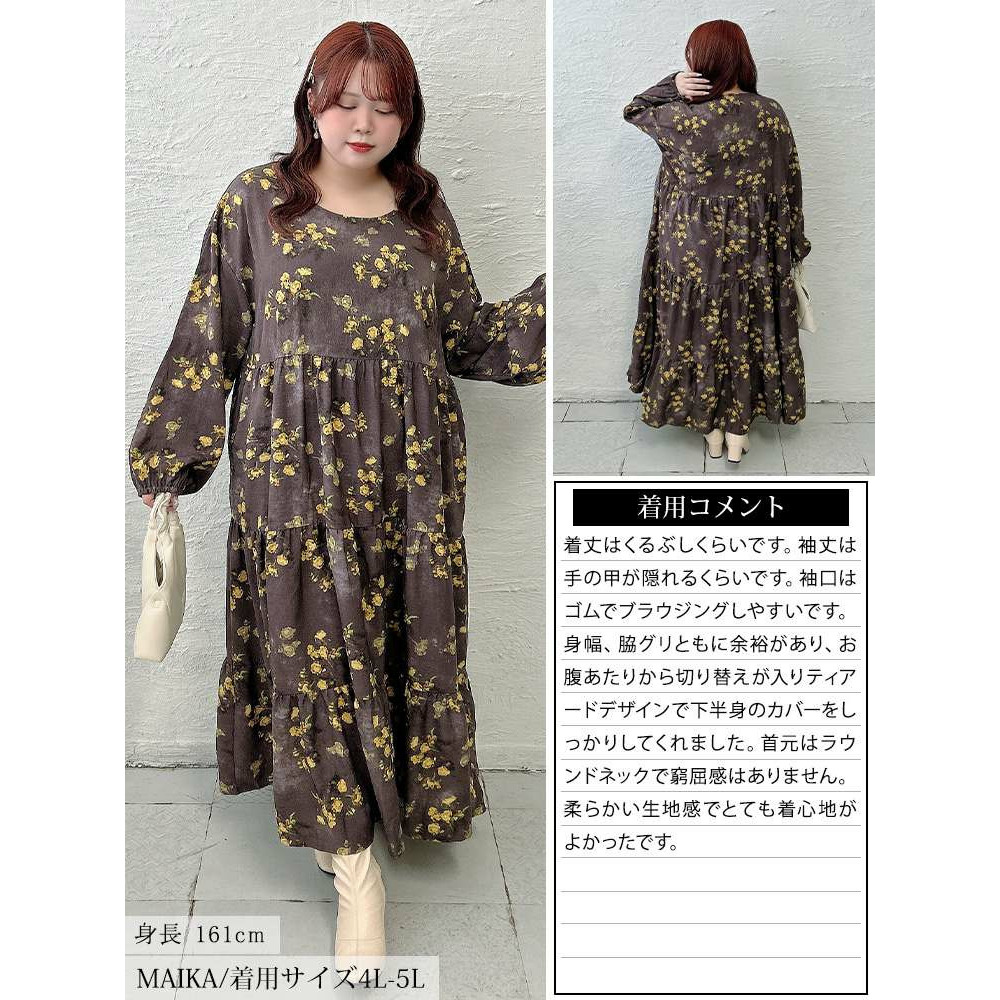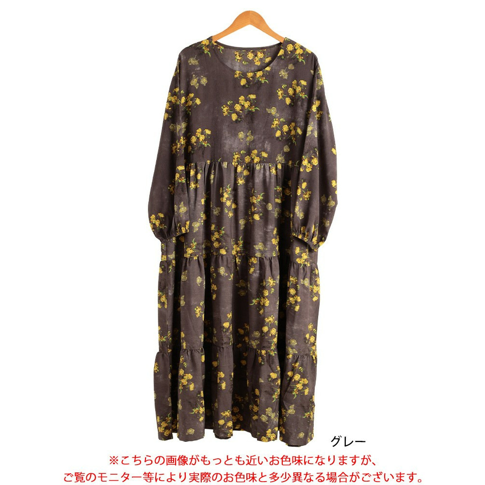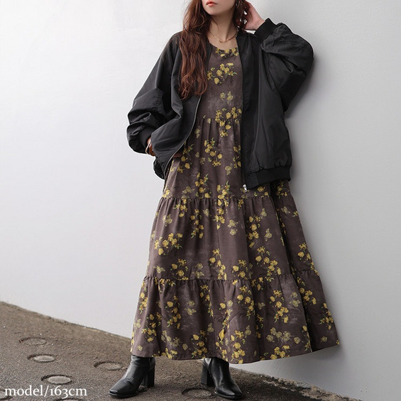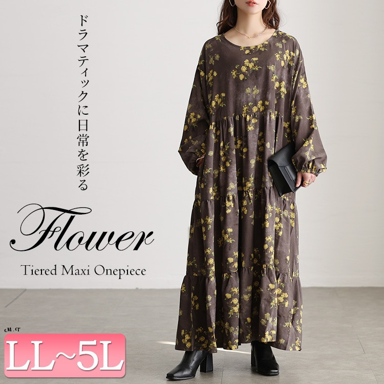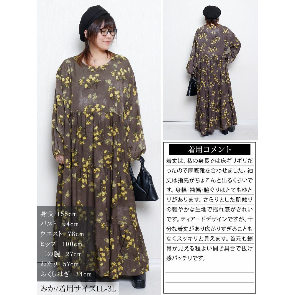 袖のボリュームが二の腕をカバーしつつ、手首を華奢に見せ、ティアードシルエットが歩くたびに優雅でドラマティックな揺れ感を生み出し、ゆったりサイズでボディラインを拾いません。マキシ丈が全体をエレガントにまとめ上げ、甘くなり過ぎず、洗練された雰囲気を演出します。