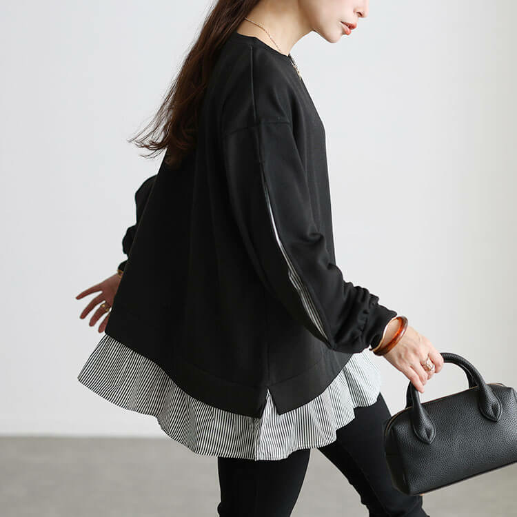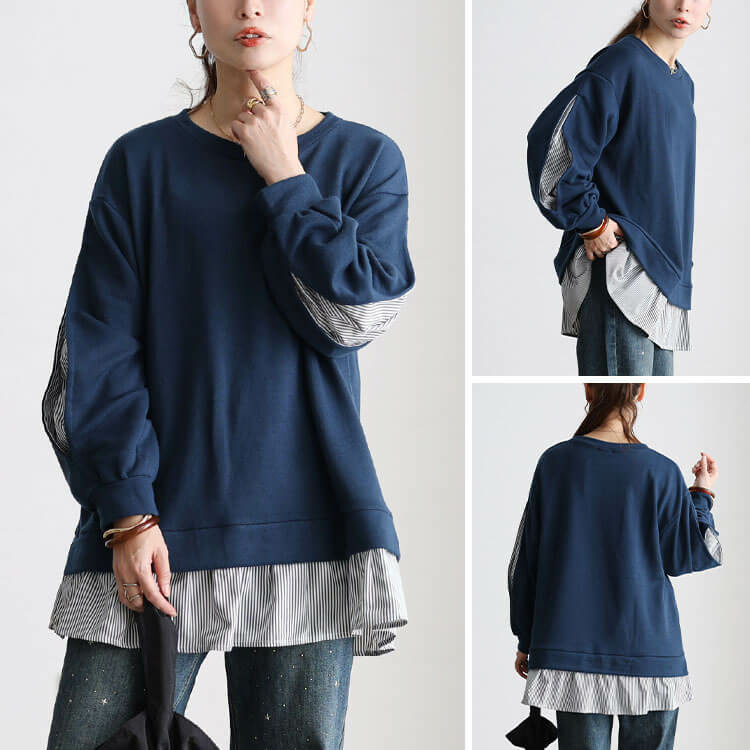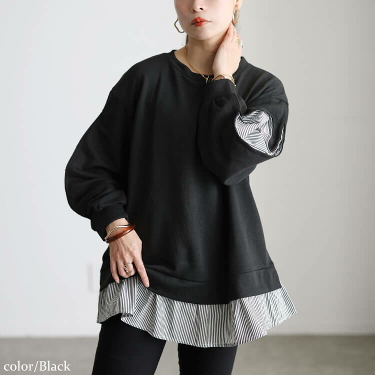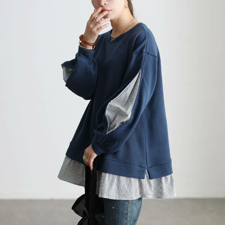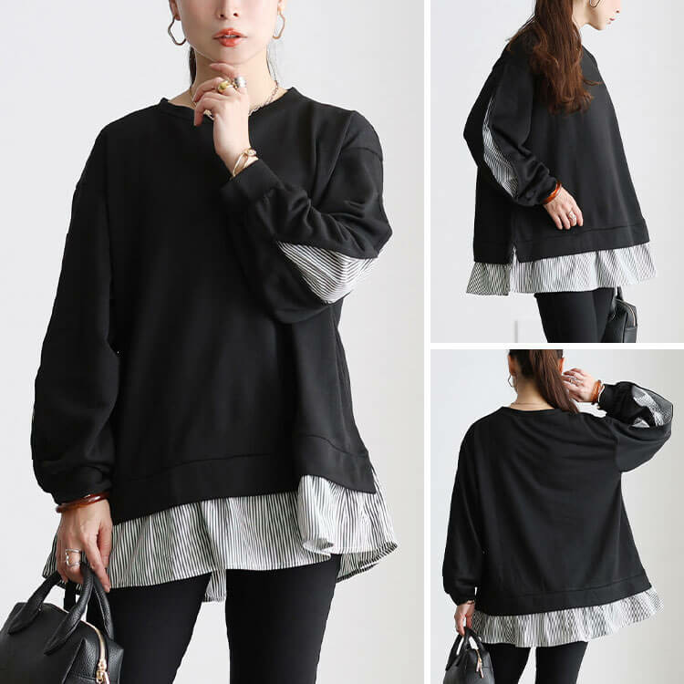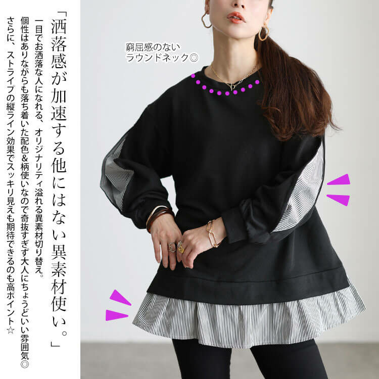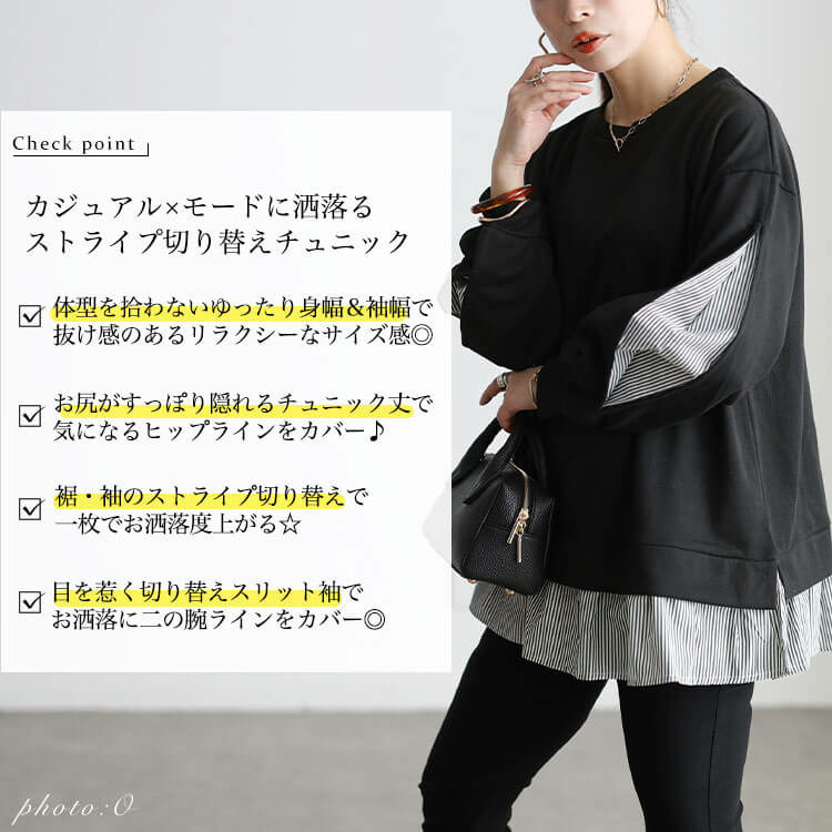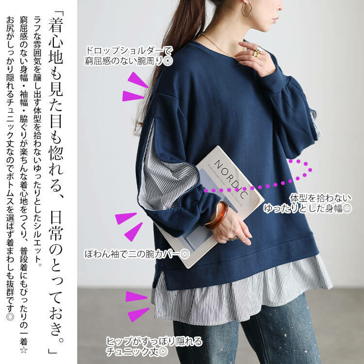 お尻がしっかり隠れるチュニック丈なのでボトムスを選ばず着まわしも抜群です♪