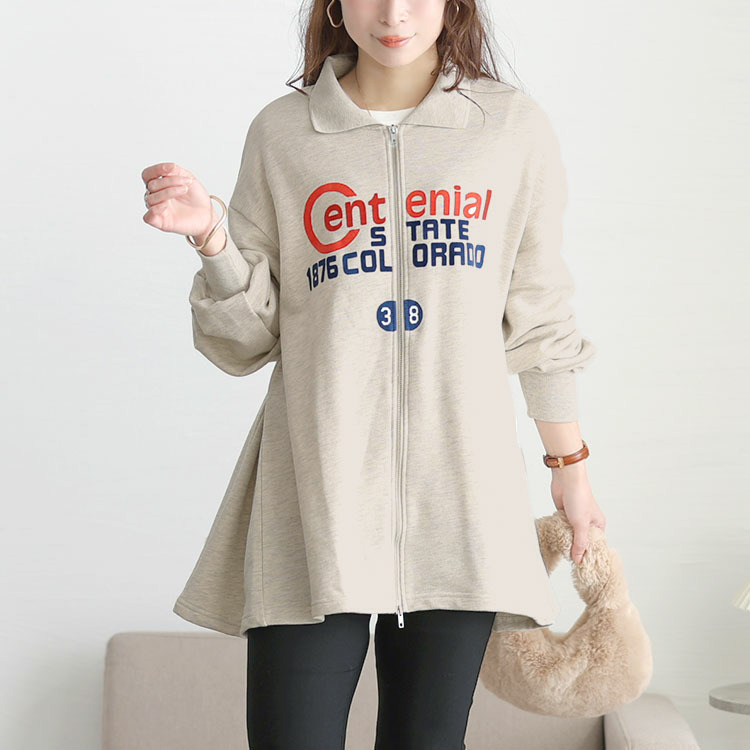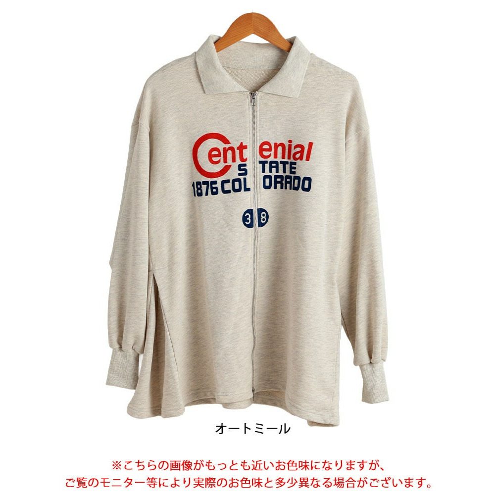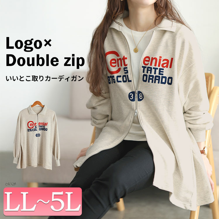 • 大きいサイズ レディース ロゴ入りダブルZIP襟付きカーディガン1