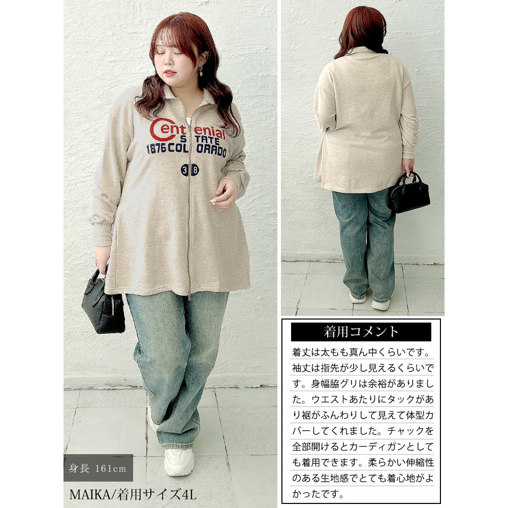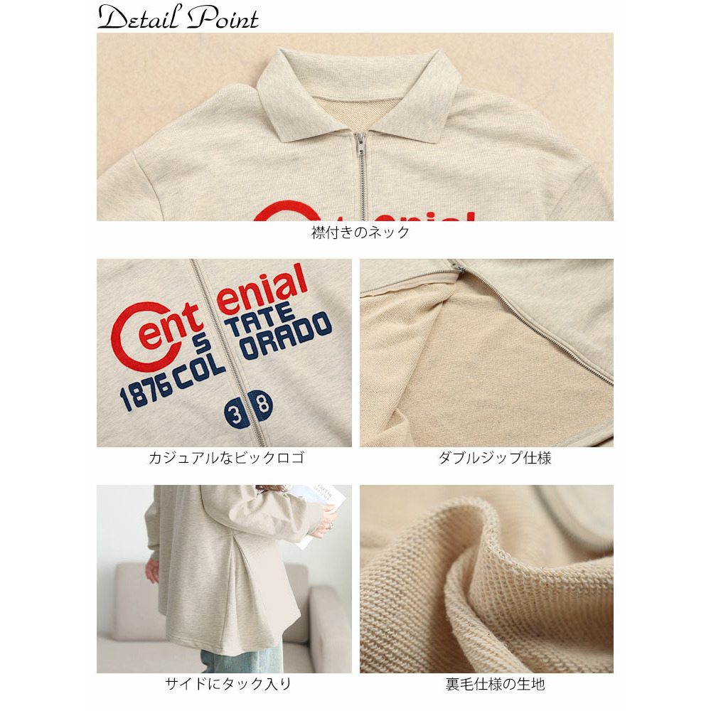 • 大きいサイズ レディース ロゴ入りダブルZIP襟付きカーディガン4