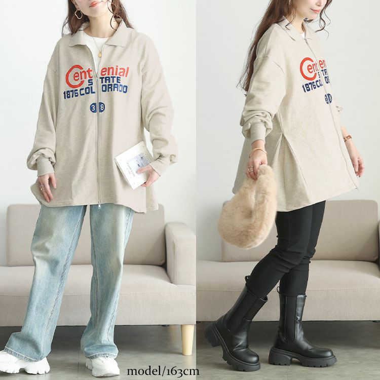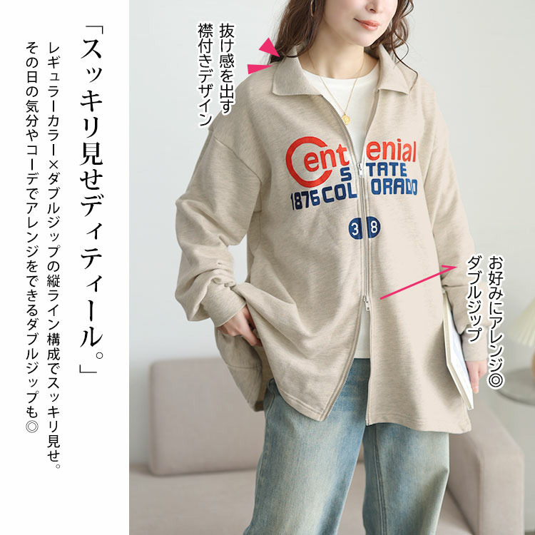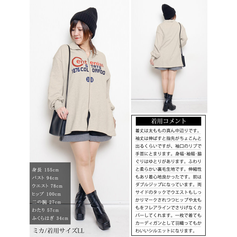 • 大きいサイズ レディース ロゴ入りダブルZIP襟付きカーディガン19