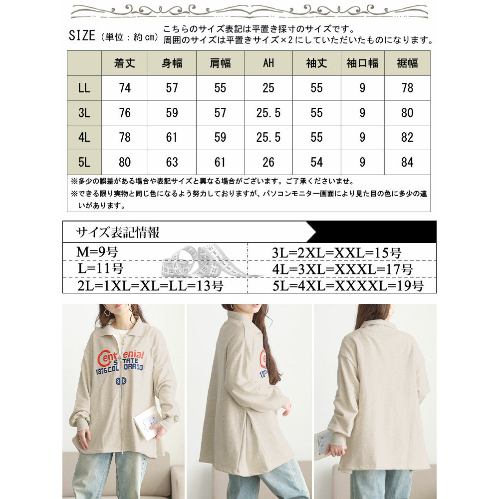 • 大きいサイズ レディース ロゴ入りダブルZIP襟付きカーディガン11