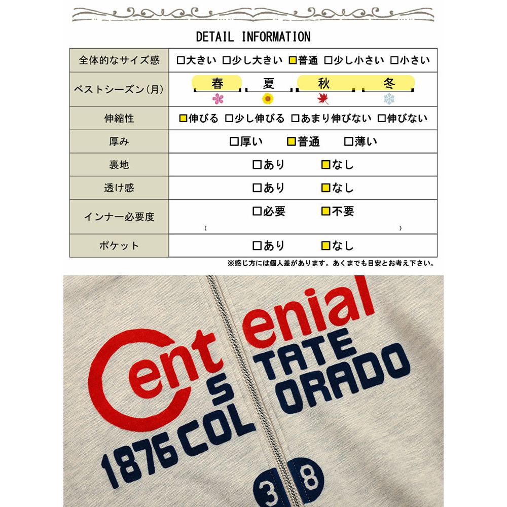 素材 【本体】綿60% ポリエステル40% 【リブ部分】綿58% ポリエステル37% ポリウレタン5%