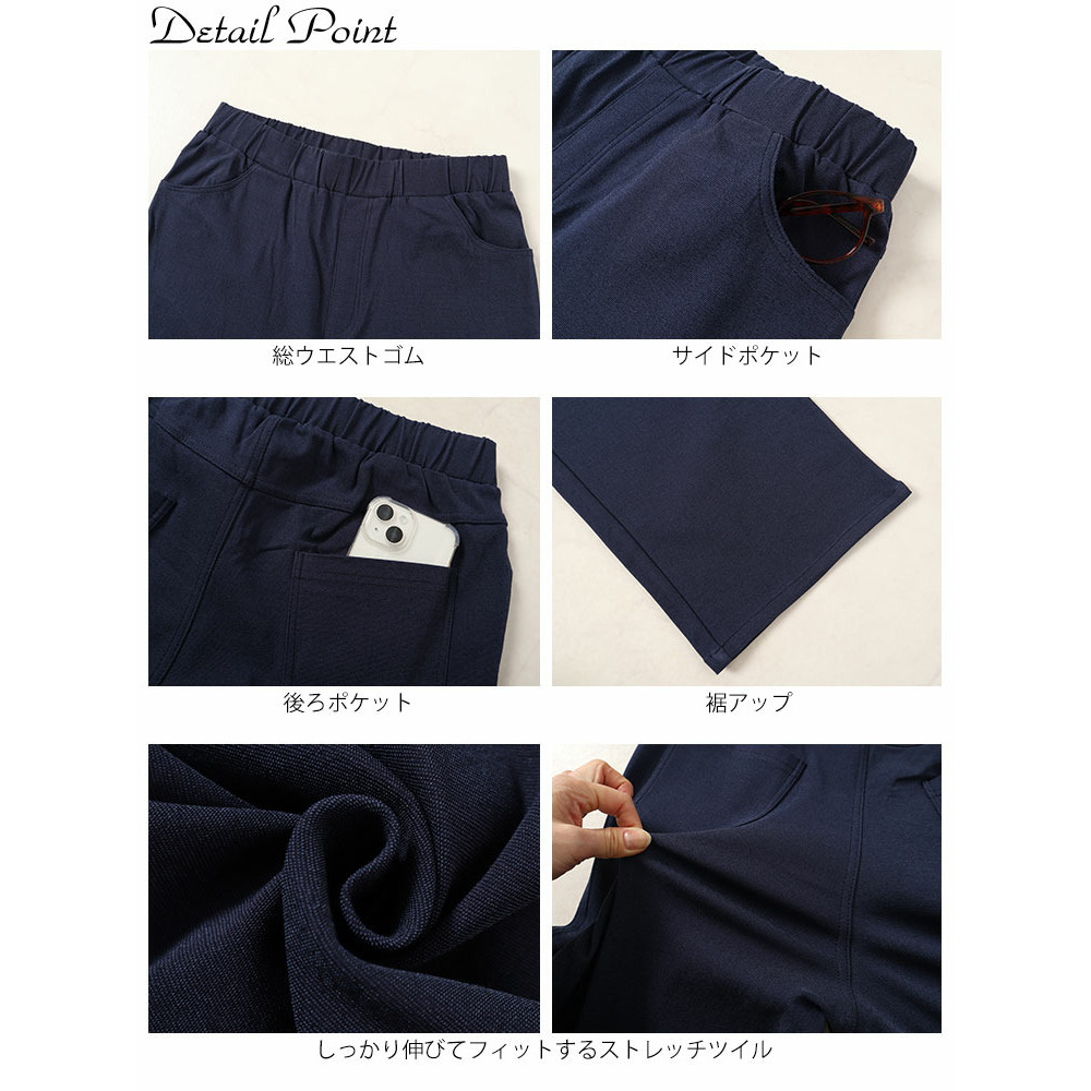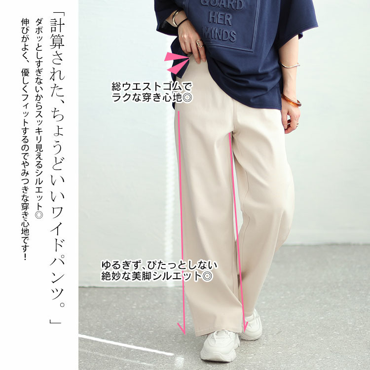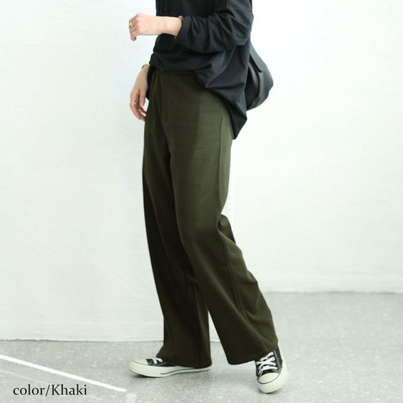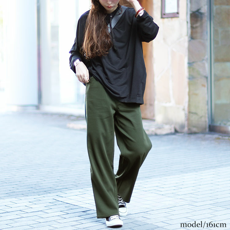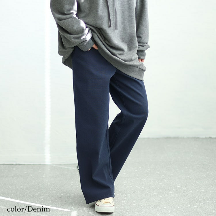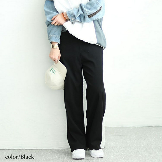 トップスを選ばず着こなせるシンプルデザインで、旬スタイルが楽しめます。