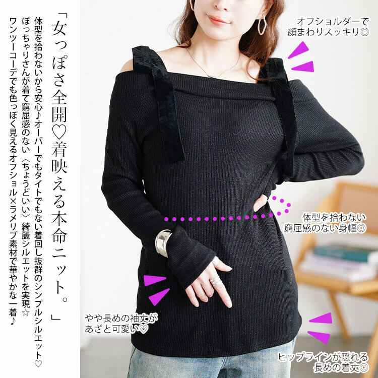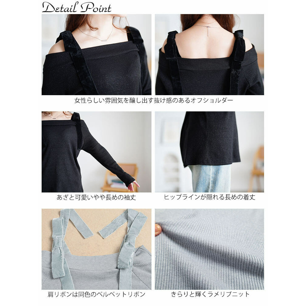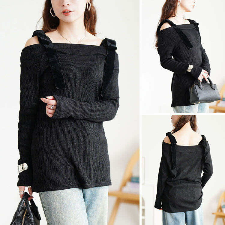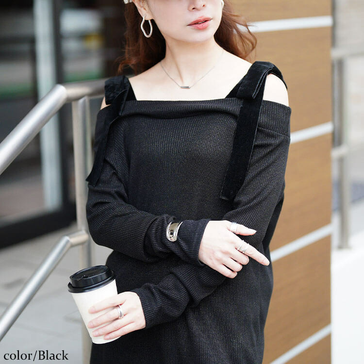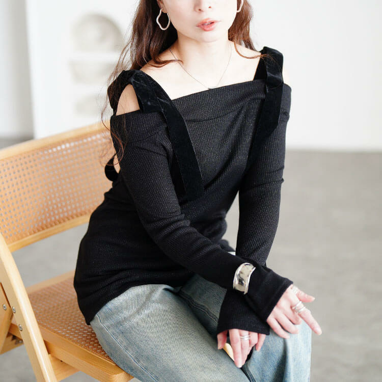 ワンツーコーデでも色っぽく見えるオフショル?ラメリブ素材で着映える華やかな一着☆