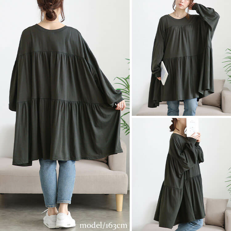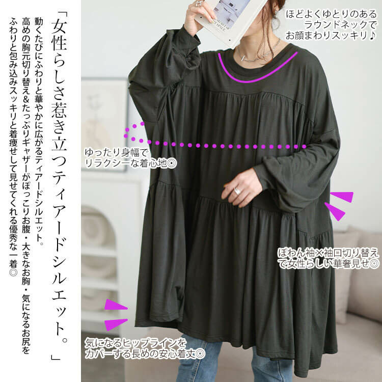 ティアードビッグチュニックTシャツ大きいサイズ レディース