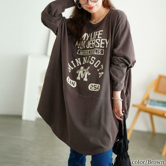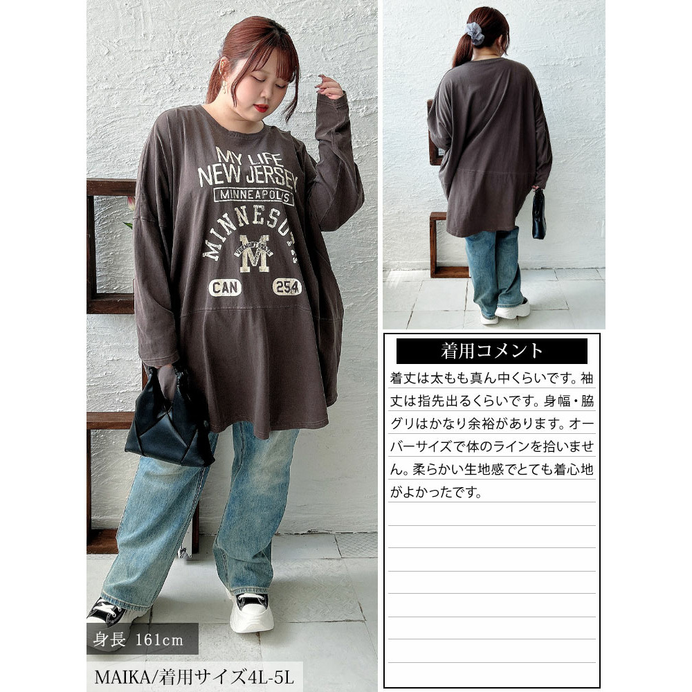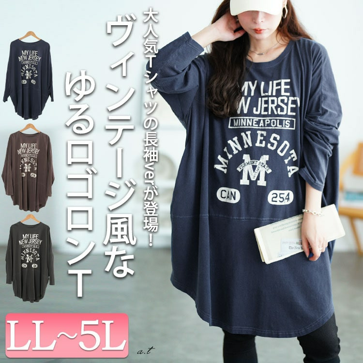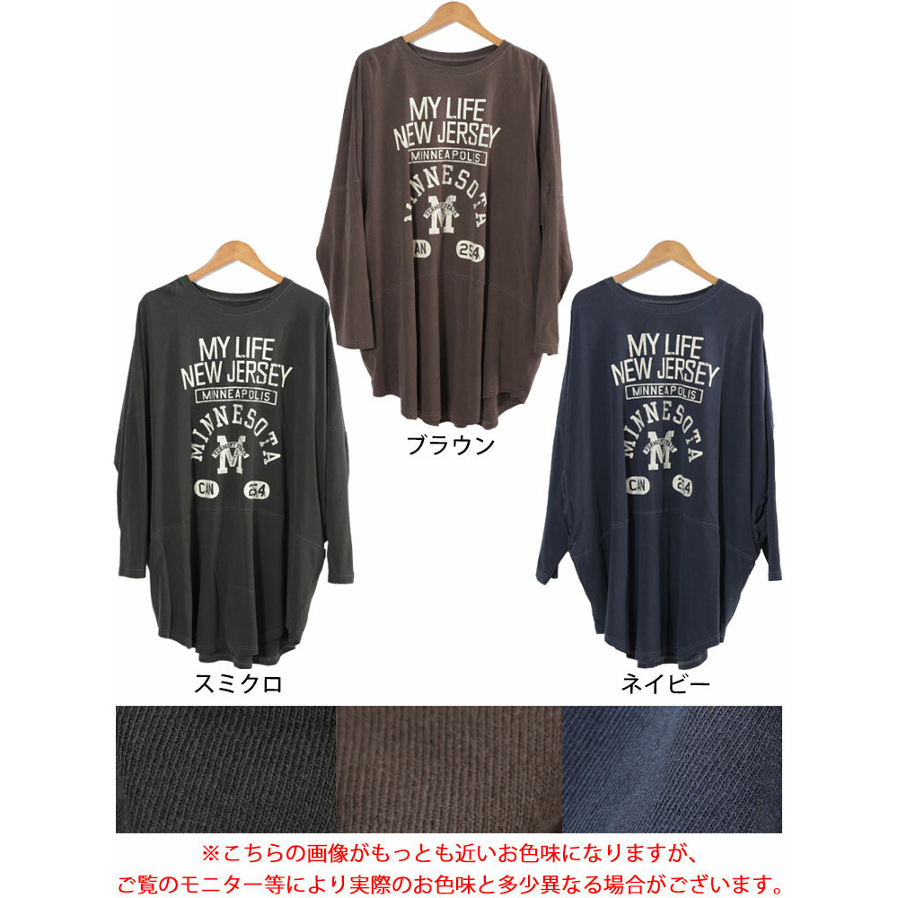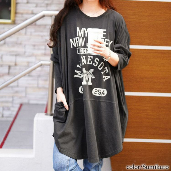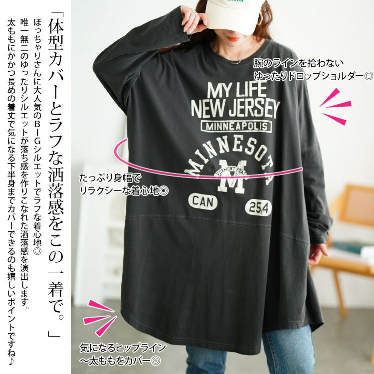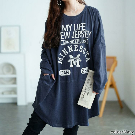 カレッジロゴコットンチュニック大きいサイズ レディース