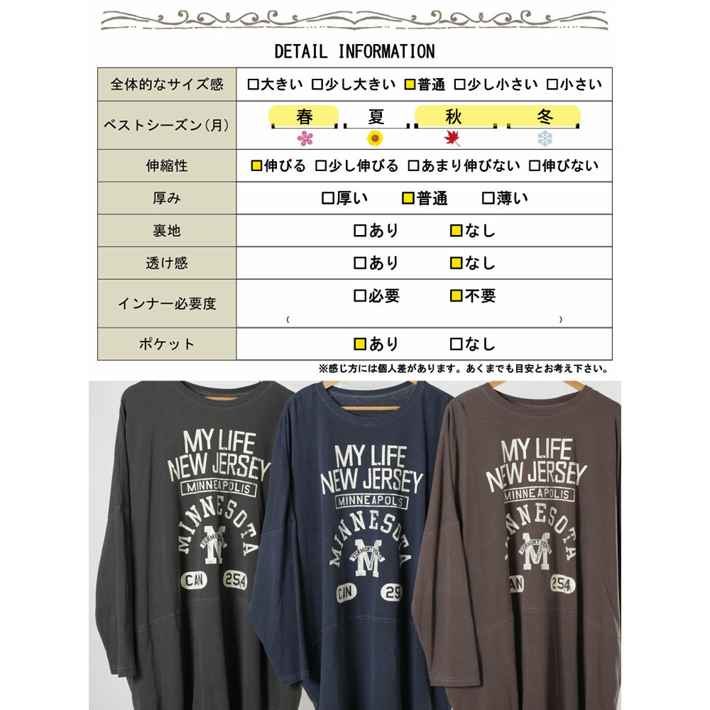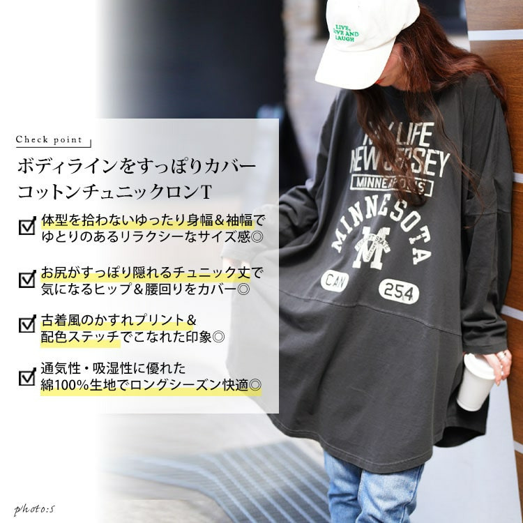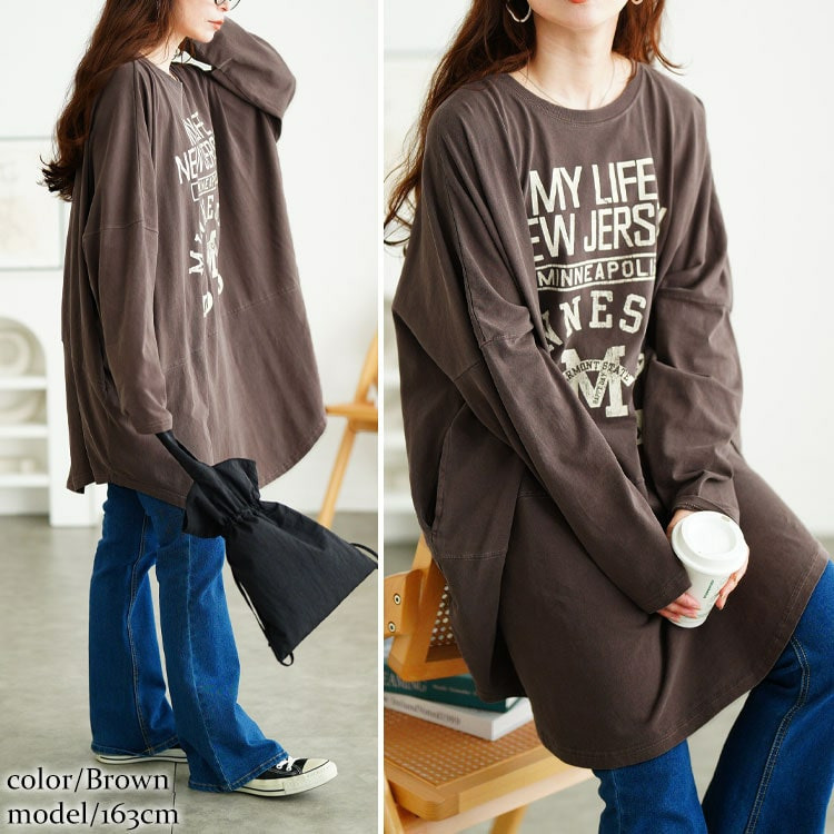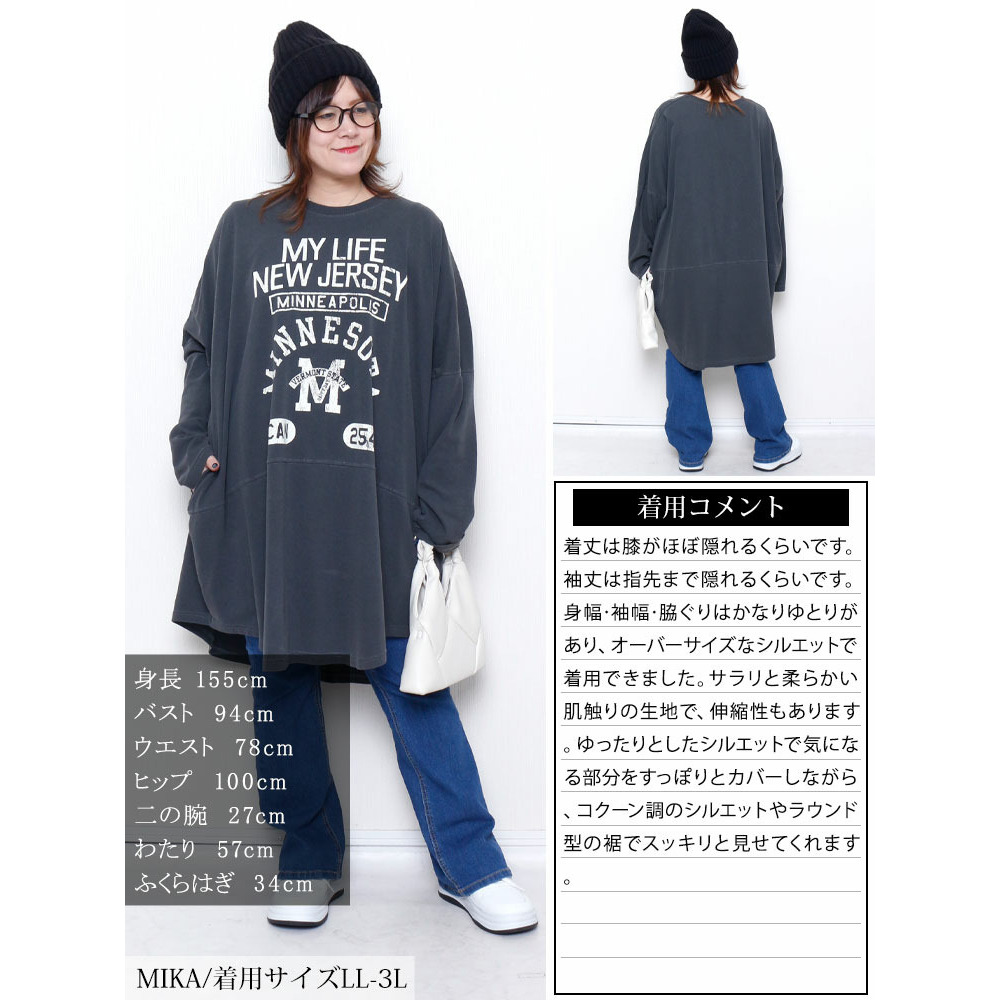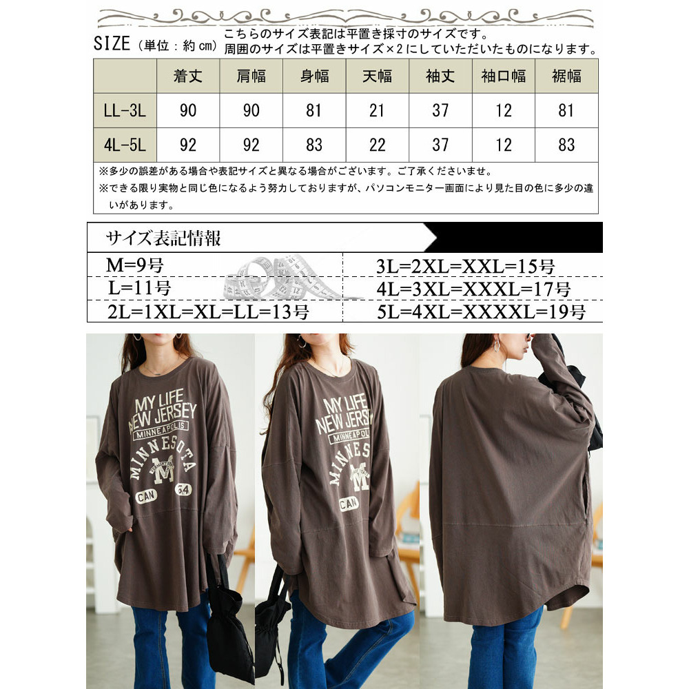 カレッジロゴコットンチュニック大きいサイズ レディース