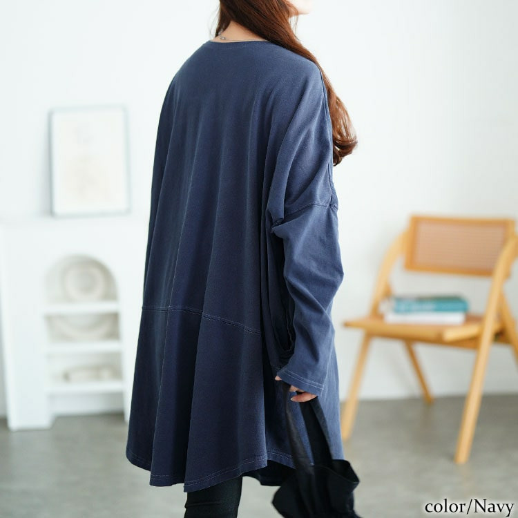 太ももにかかる長めの着丈で下半身まで体型カバーしてくれるので下半身ぽっちゃりさんにもオススメの一着です!