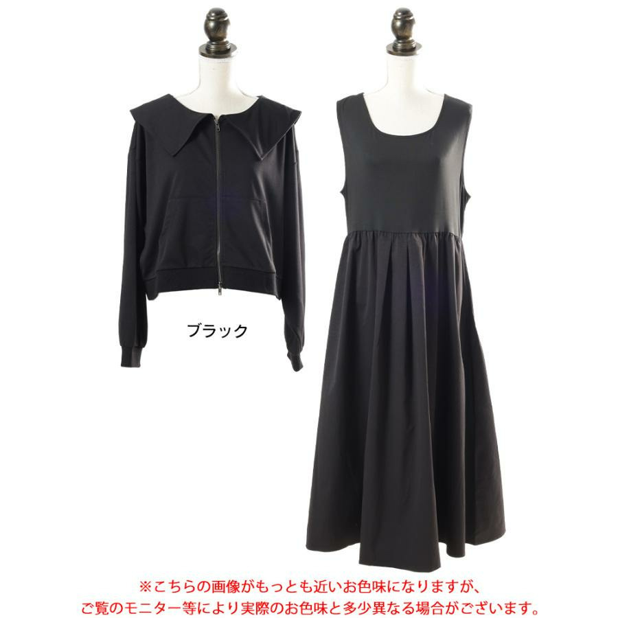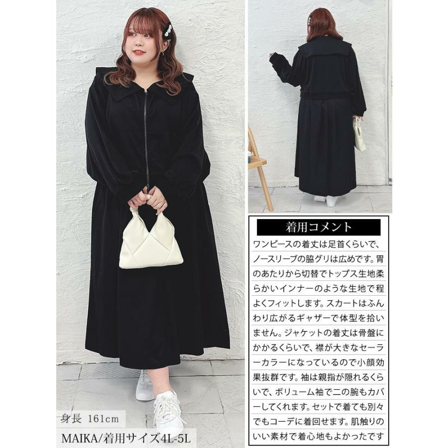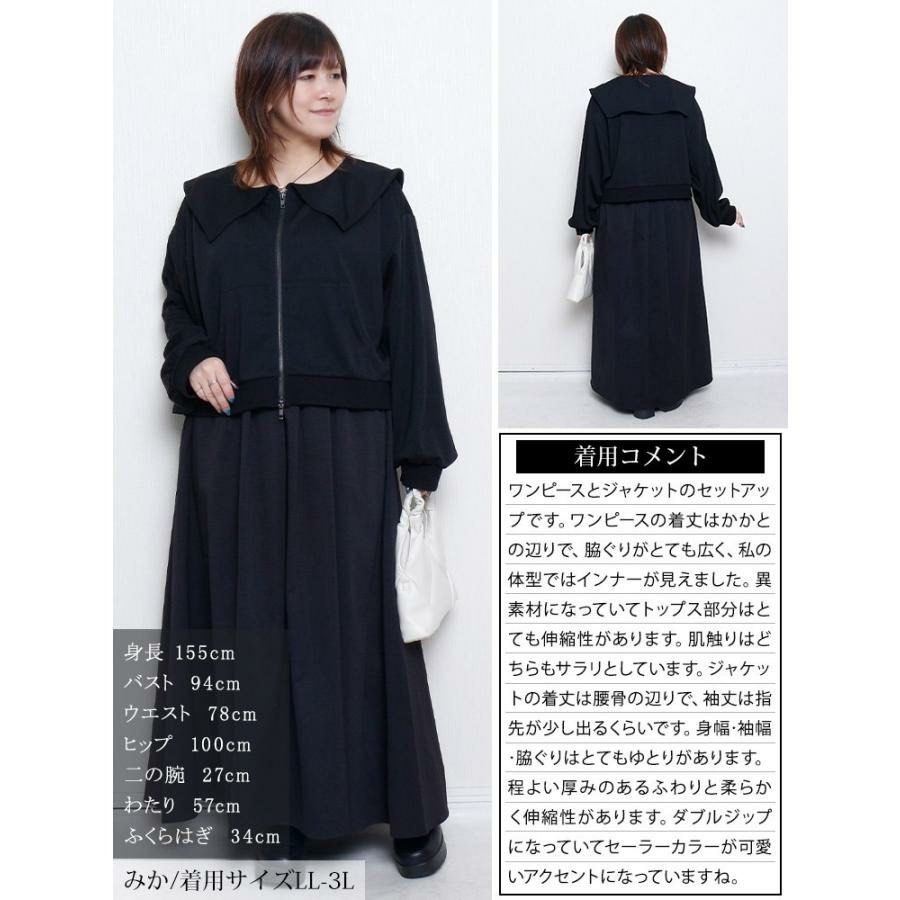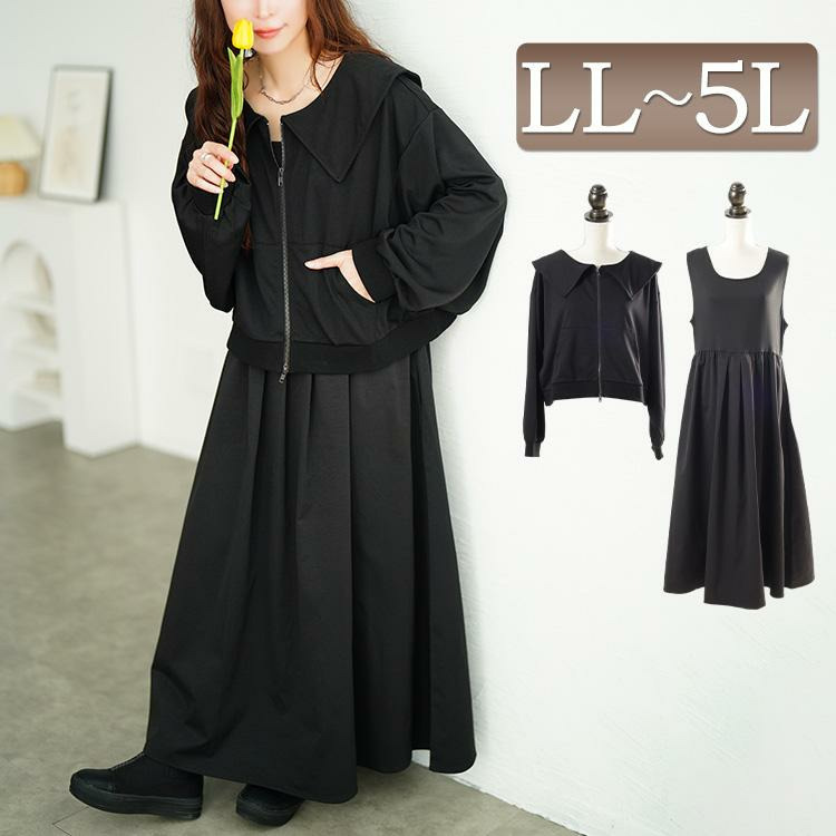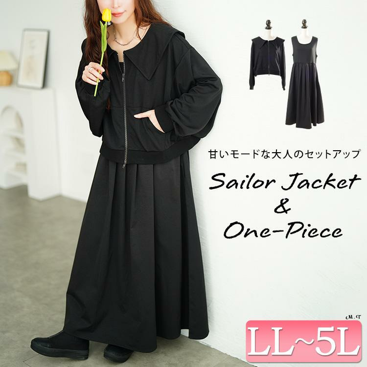 セーラーカラーZIPブルゾン&異素材ノースリーブワンピース2点セット大きいサイズ レディース