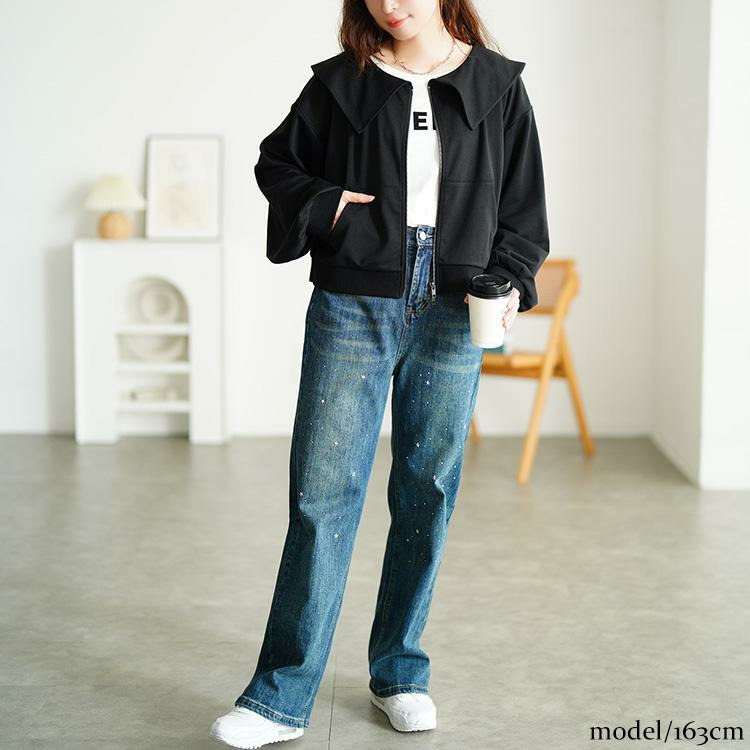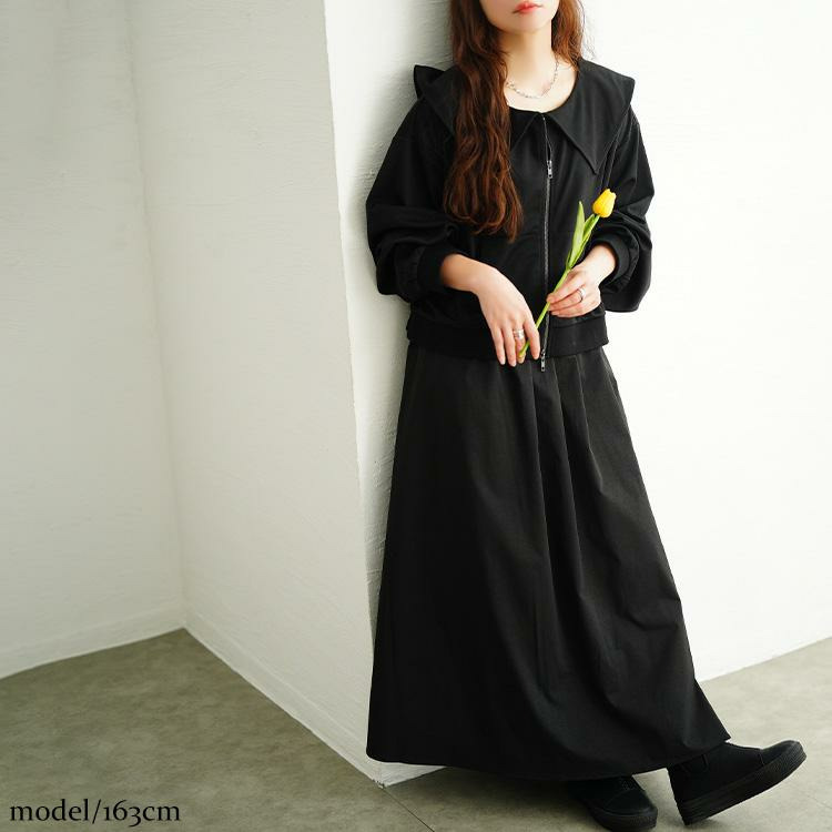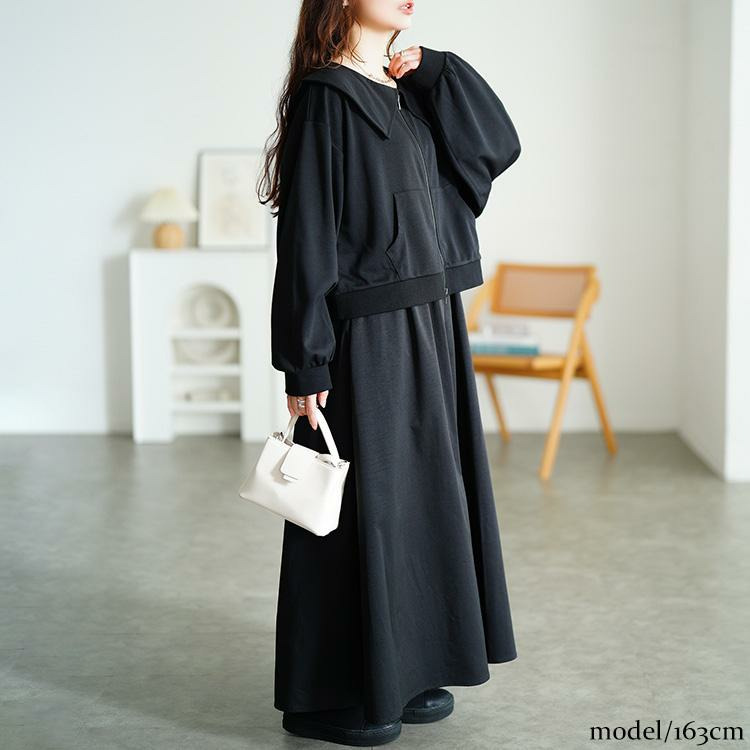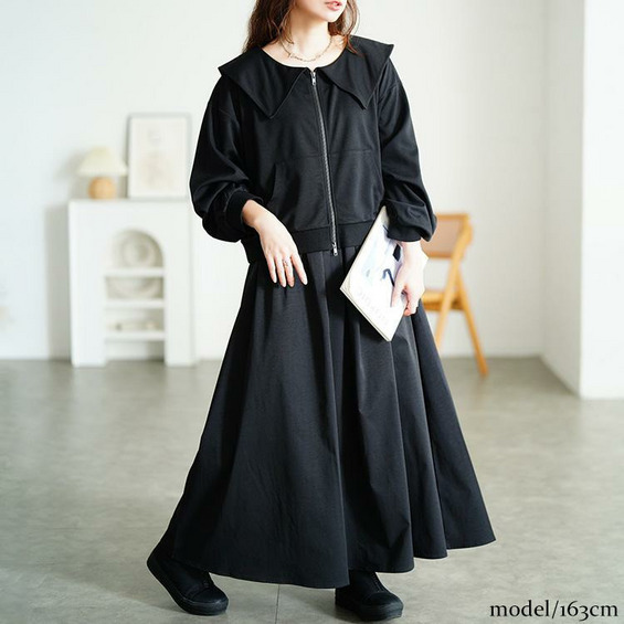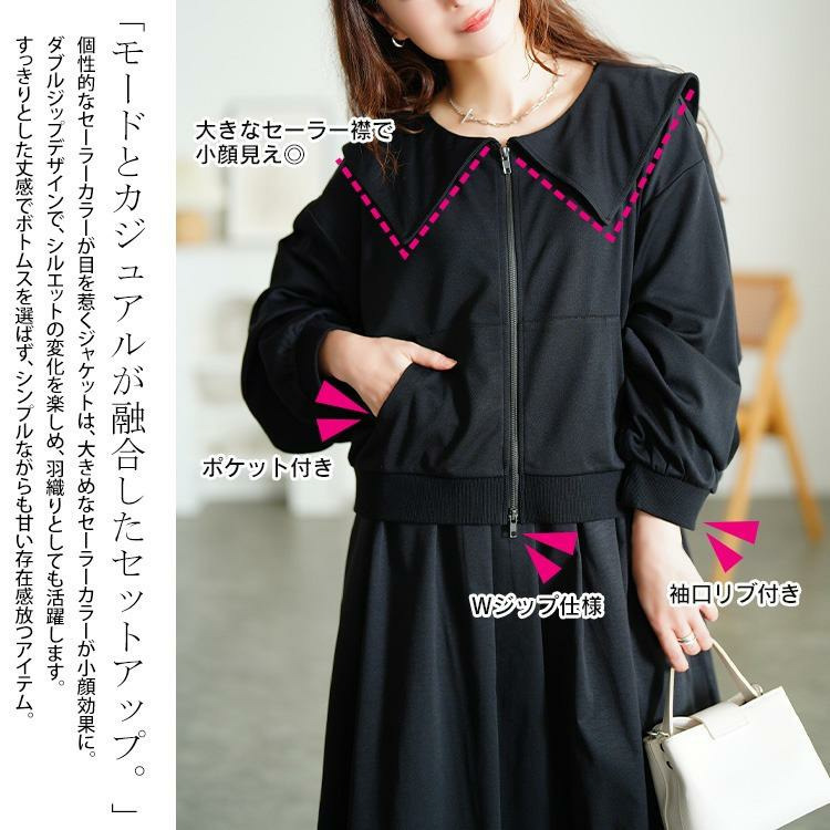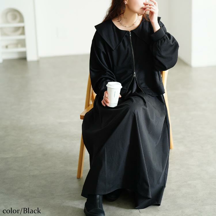 セーラーカラーZIPブルゾン&異素材ノースリーブワンピース2点セット大きいサイズ レディース